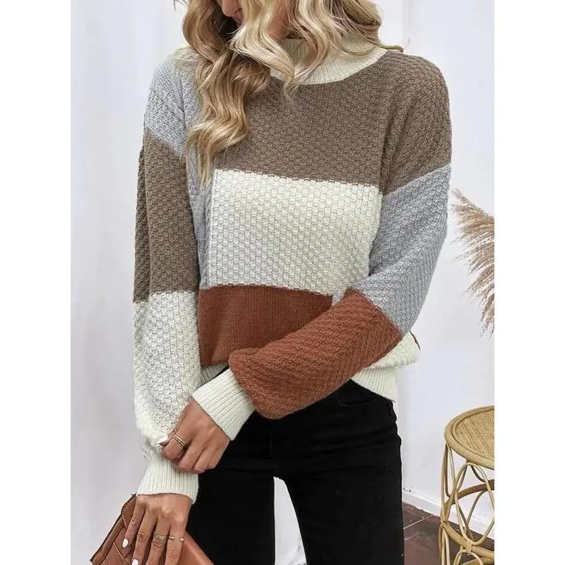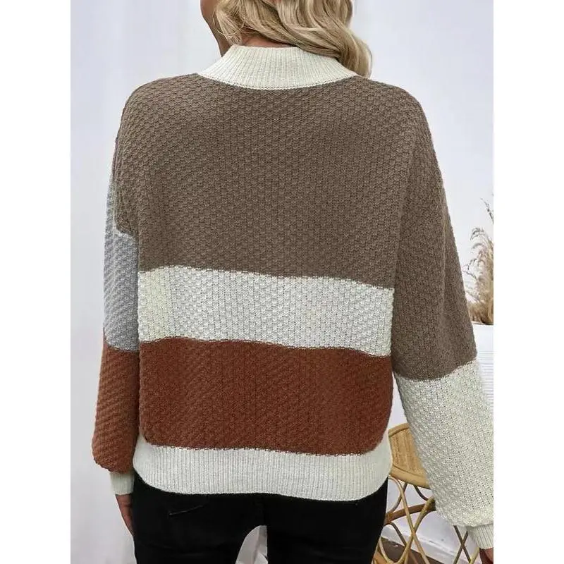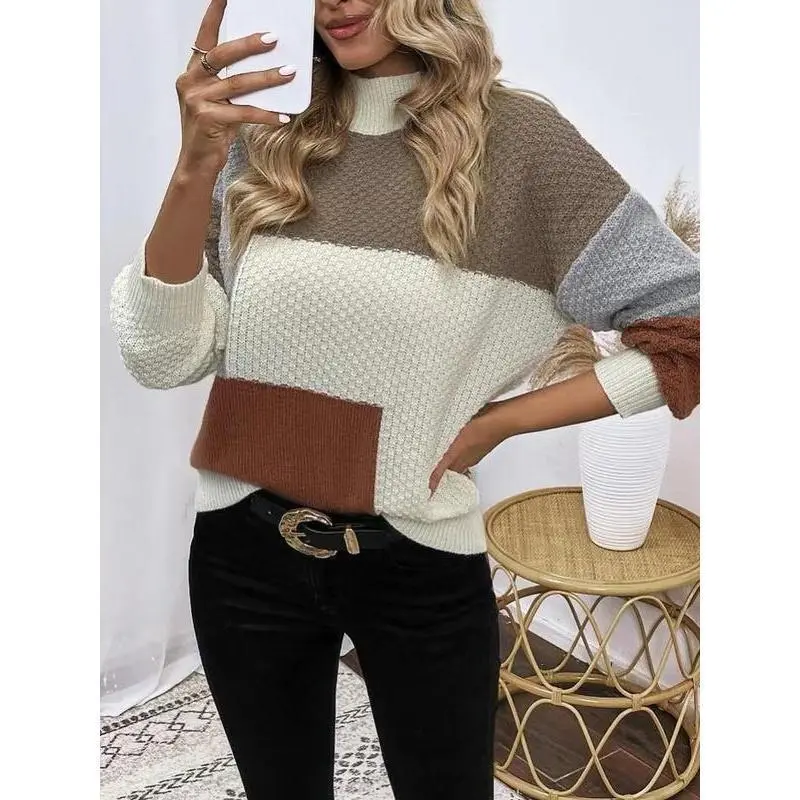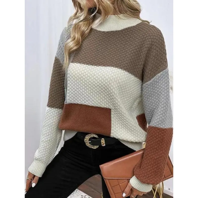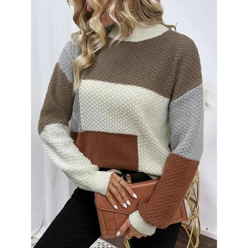 [Versatile for Fall & Winter]: Ideal for daily outdoor wear in colder seasons, a must-have knit top. [Adaptable for Various Settings]: Whether you're stepping out for daily errands or enjoying outdoor activities, this casual yet fashionable sweater is versatile enough to suit different occasions with ease. [Cozy Warmth for Chilly Days]: Crafted with soft acrylic material and long sleeves, this mock neck sweater is your go-to for ultimate comfort and warmth during the fall and winter seasons. [Easy Care for Lasting Wear]: Keep your sweater looking its best with simple cold wash or hand wash only instructions, ensuring easy maintenance and longevity of the garment. [Trendsetting Fashion Statement]: With its colorblock design and drop shoulder style, this sweater is a 2023 new age fashion piece that offers a chic and sophisticated look for the style-savvy woman.