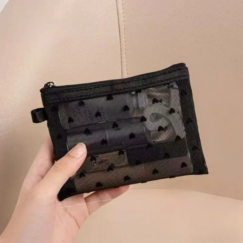 Heart-Shaped Mesh Makeup Bag, New Portable Lipstick Touch-Up Travel Set, Large Capacity Mini Bag, Two-Piece Kit, Perfect for On-The-Go Use