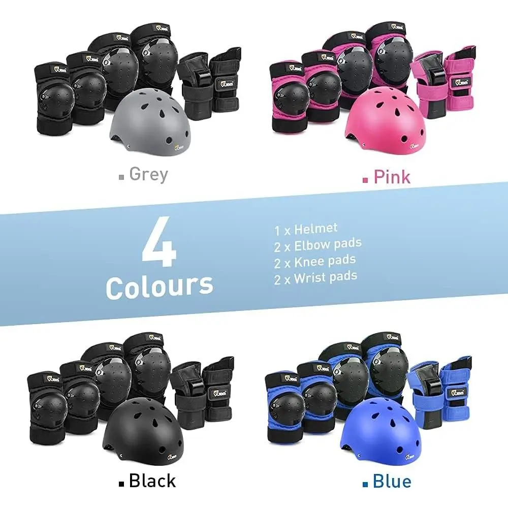 Adult & Kid Skating Protective Gear Set for Beginner to Advanced, Skateboard Helmet Knee and Elbow Pads with Wrist Guards for Inline Roller Skating, Scooter, Skateboarding
