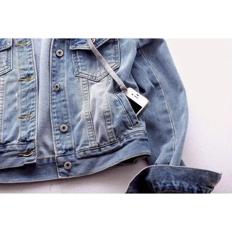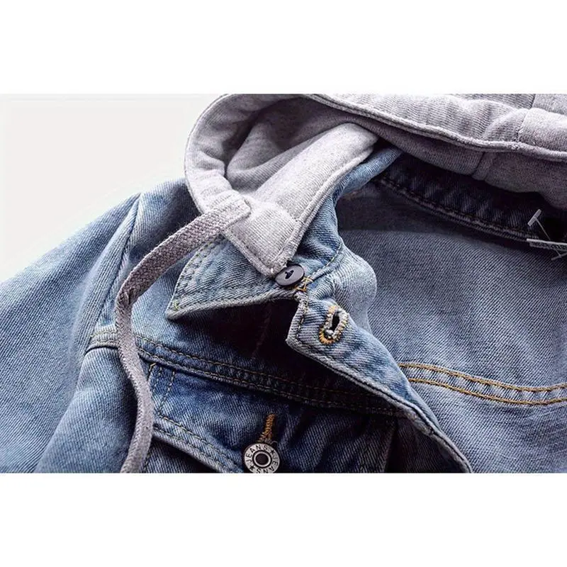 This women's denim jacket is a paragon of casual versatility. The classic denim blue exudes a retro fashion sense. The long-sleeved design with a detachable hood allows for multiple wearing styles to meet different matching needs. The short style is neat and stylish, easily highlighting the body proportions. Made of high-quality denim fabric, it is comfortable and durable. Whether it's for daily outings in spring and autumn or various occasions like gatherings with friends, wearing it can show a casual and comfortable style. It is an indispensable fashion item in the wardrobe.
