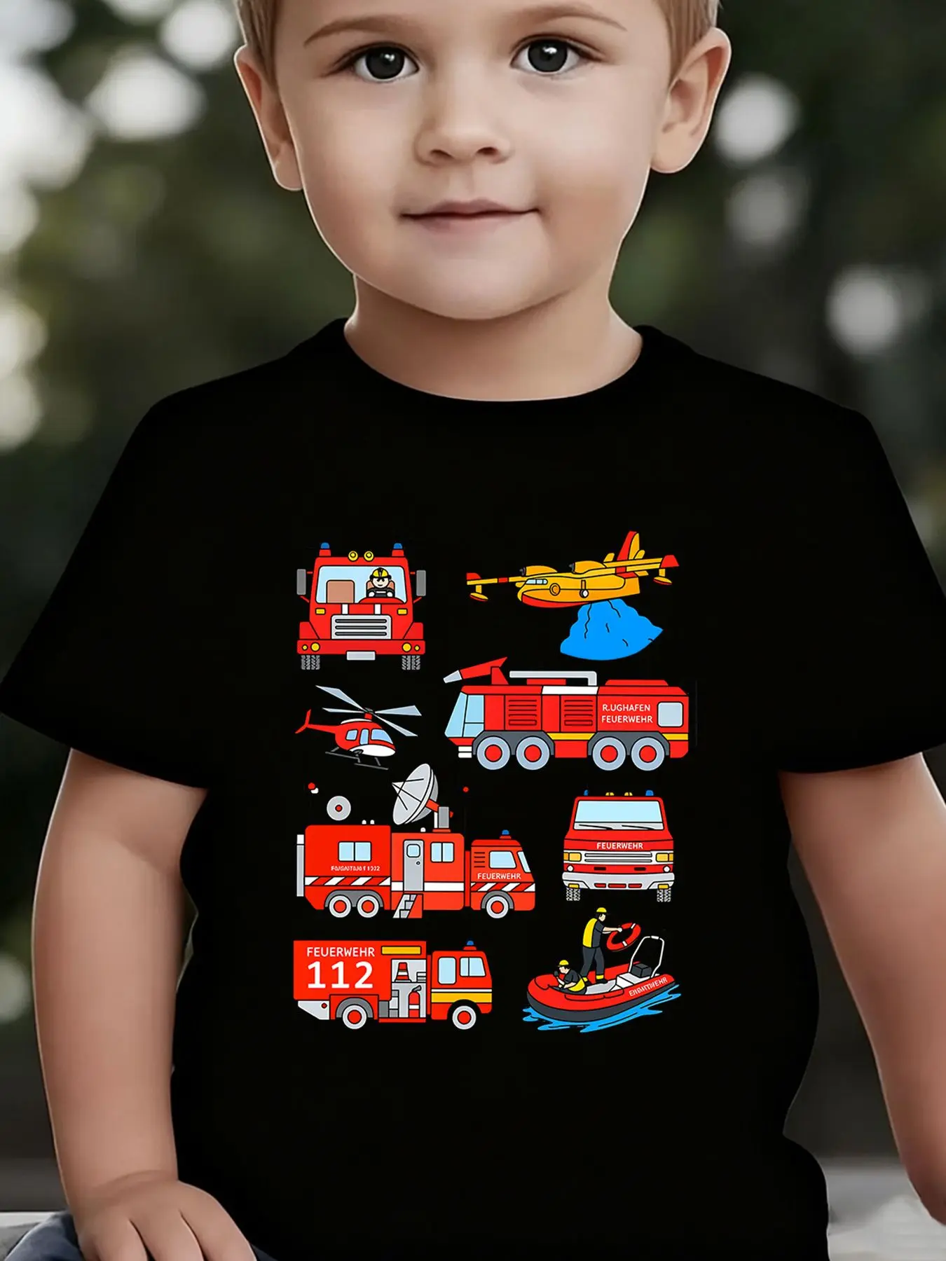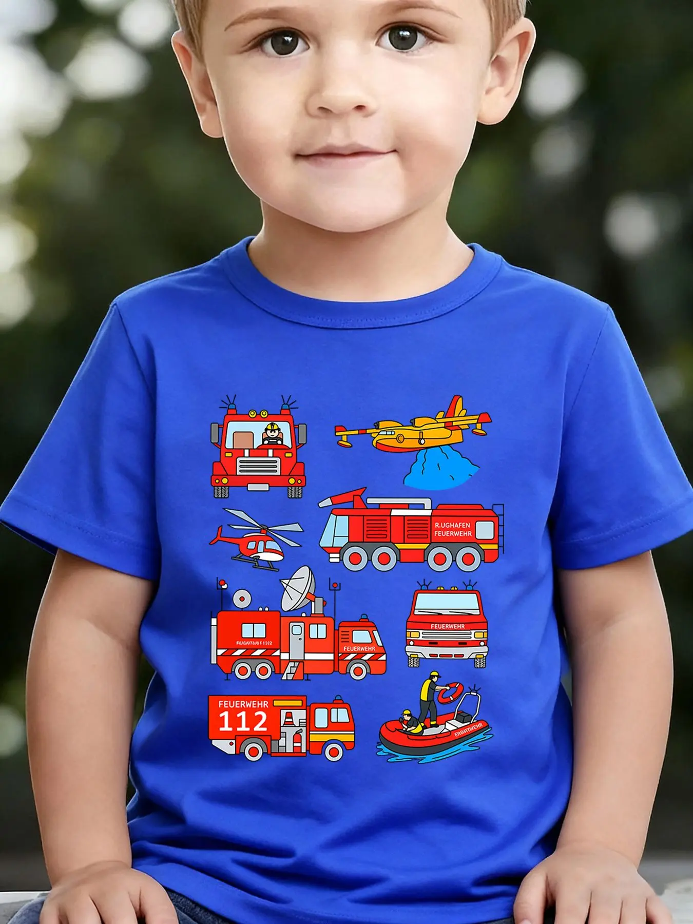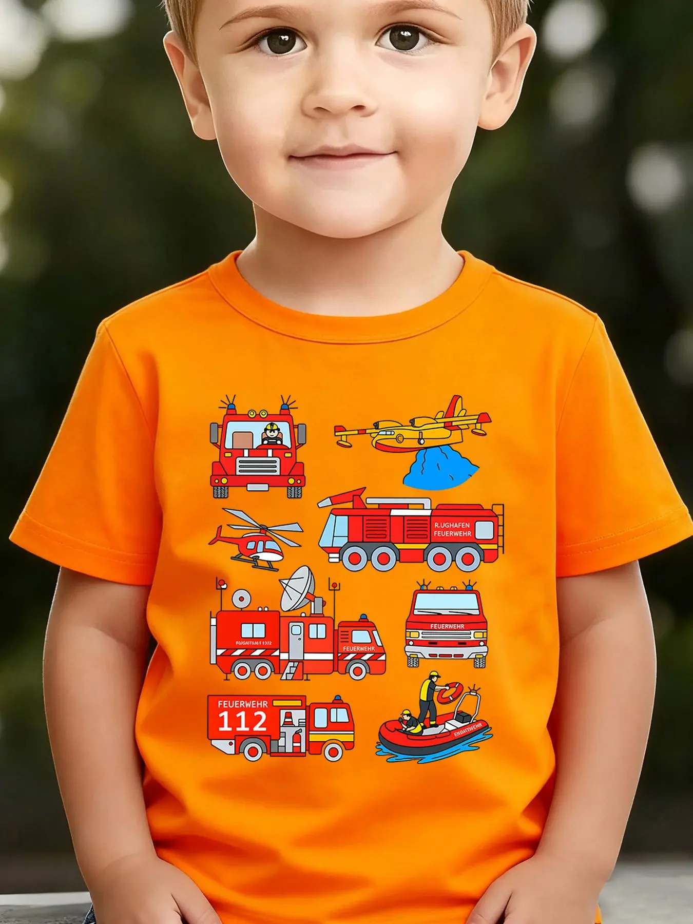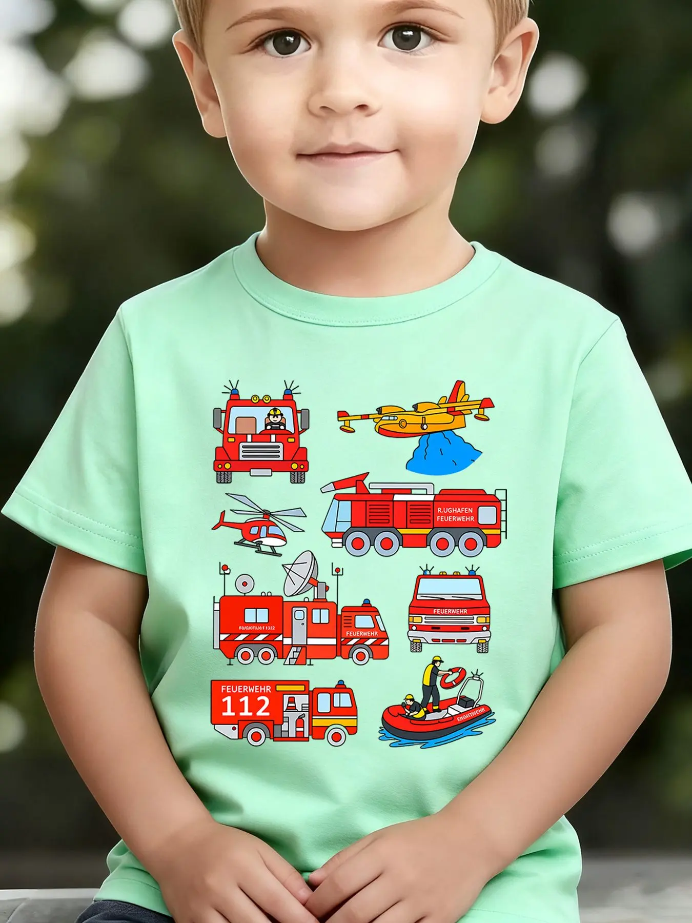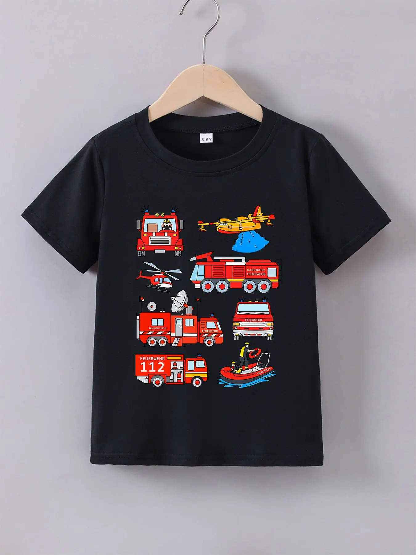 Boys' Summer Breathable & Comfortable "Fire Truck" Cartoon Print (3-12Y) Casual Sports T-Shirt
