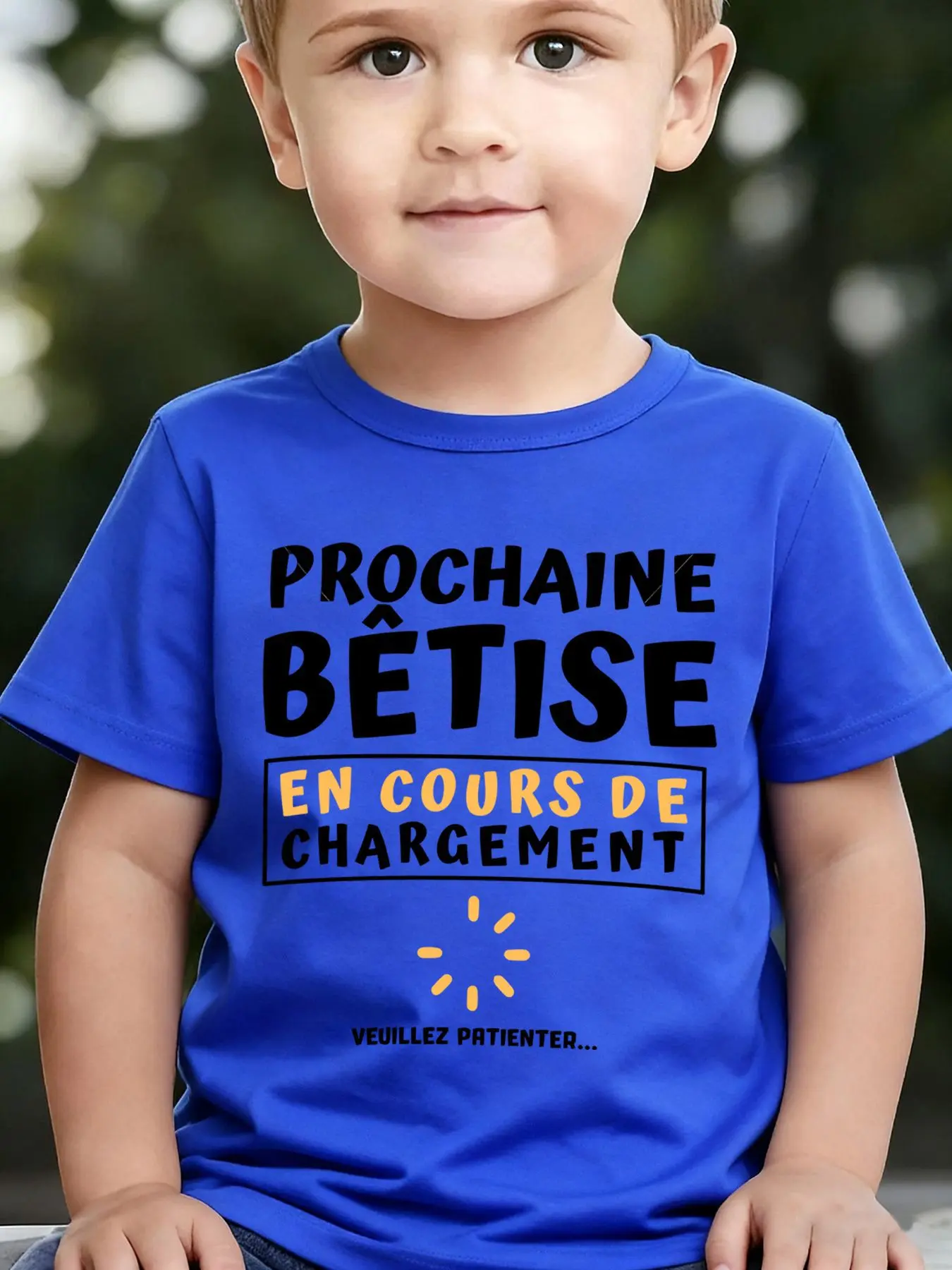 Boys' Summer Breathable & Comfortable "Next Prank Loading Please Wait" Cartoon Print (3-12Y) Casual Sports T-Shirt