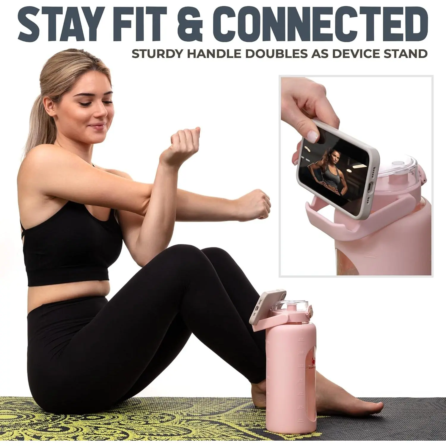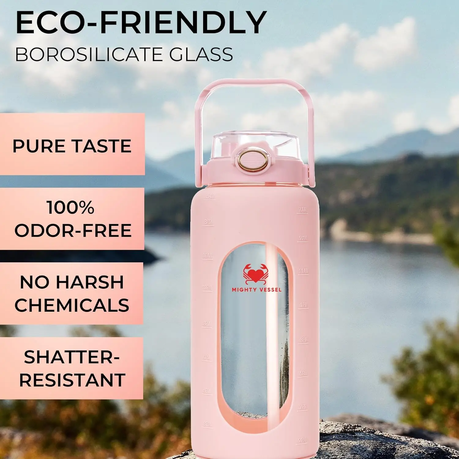 64 Oz Water Bottle with Time Marker & Straw - Pink Pregnancy 2 Liter Glass Water Bottles with Measurements - Daily intake bottle - Leakproof Borosilicate jug