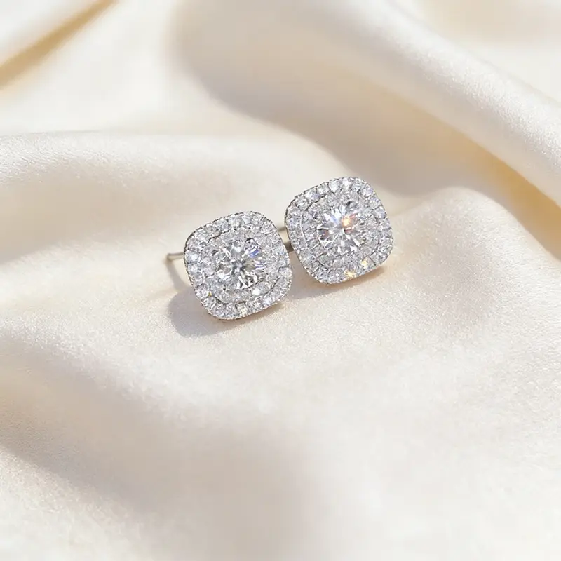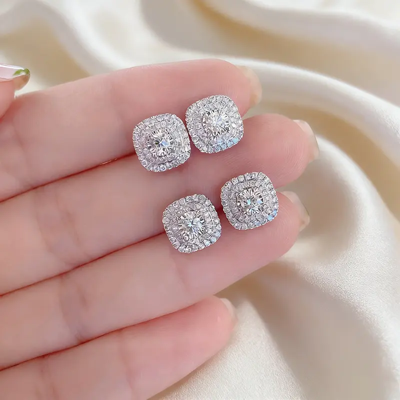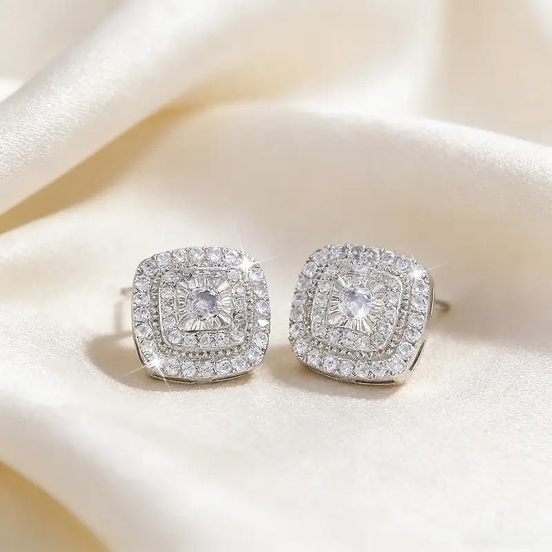 Elegant micro-inlaid white zirconia stud earrings, suitable for women, vintage style, ultra-bright fully inlaid square earrings