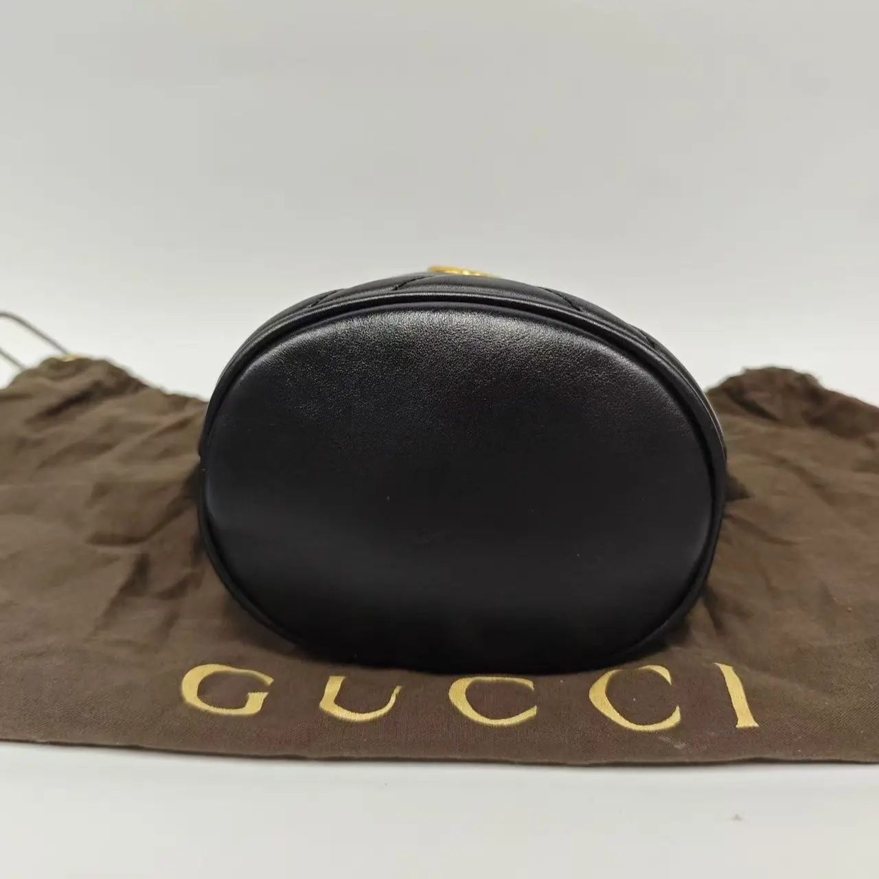Pre-owned france Crossbody Bags Gucci Black and Gold Small Bucket Bag (SZ H04262)