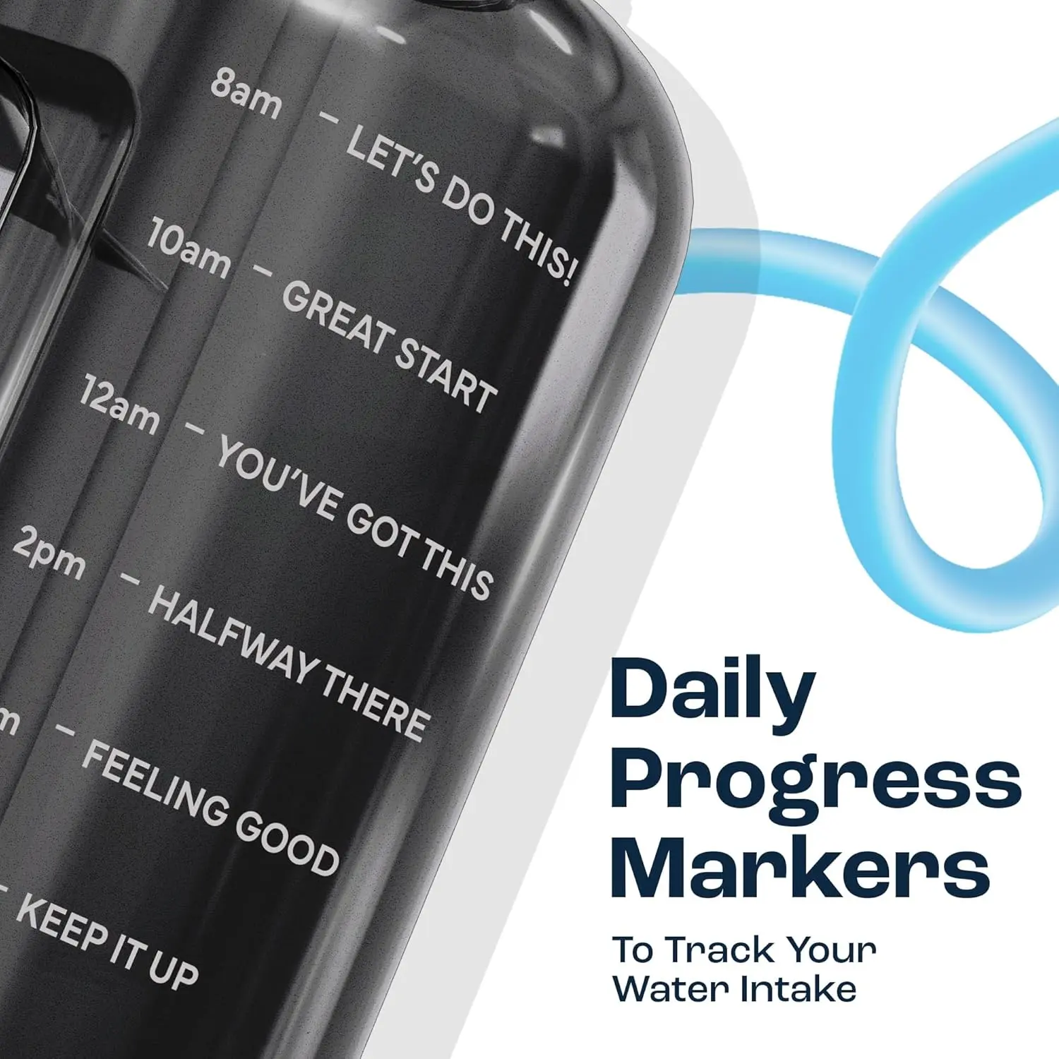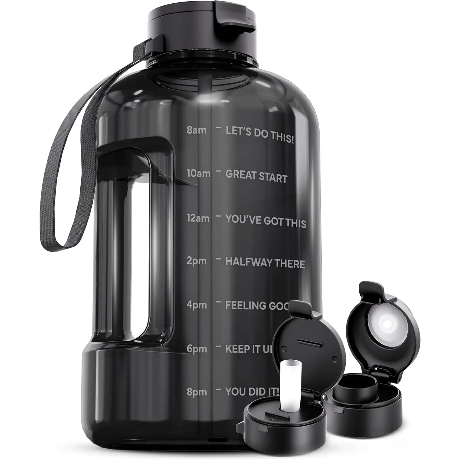 128 oz Water Bottle with Time Marker - Straw & Chug Lid - BPA Free 1 Gallon Gym Water Bottle with Handle - Big Gallon Jug (Gray, 128 Ounces)
