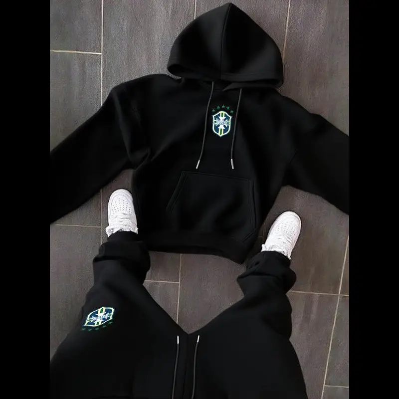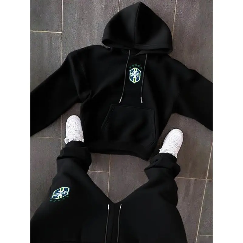 ��Graphic Print��: Features an eye-catching graphic print, setting it apart from typical hooded sweater options on the market. ��Thick Fabric��: Constructed with thick fabric to provide warmth, making it suitable for the spring and fall seasons. ��Fitted Cut��: Designed with a fitted silhouette that complements the body shape, offering a streamlined appearance while wearing. ��Long Sleeve��: Equipped with long sleeves that enhance coverage and protection during cooler weather conditions. ��Versatile Pairing��: This set can be paired effortlessly with various trousers, allowing for diverse outfit combinations and personal expression.