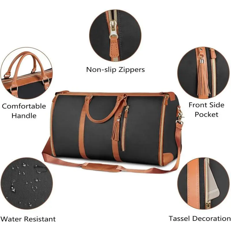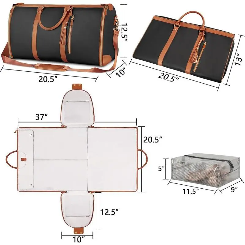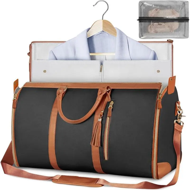 2 in 1 Garment Duffle Bag, Convertible Carry on Garment Bags for Travel for Women, Water Resistant Travel Bags with Shoe Pouch, Hanging Suitcase Suit Weekender Bag, Black, Large