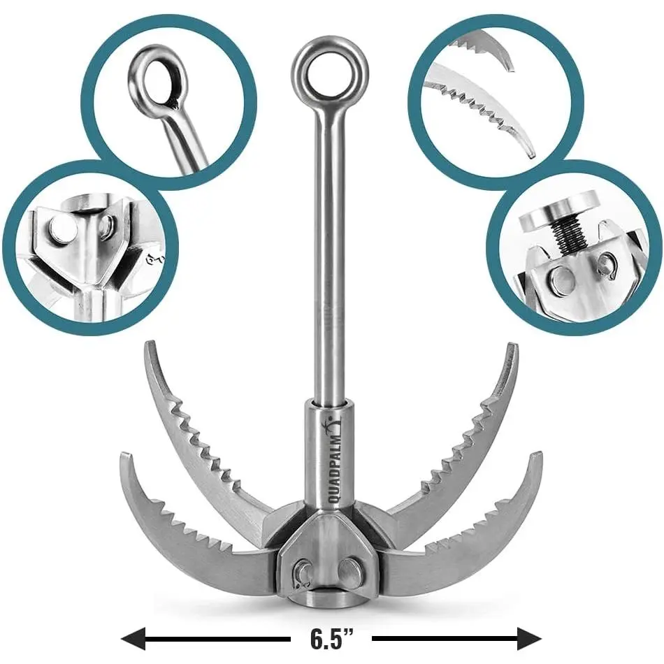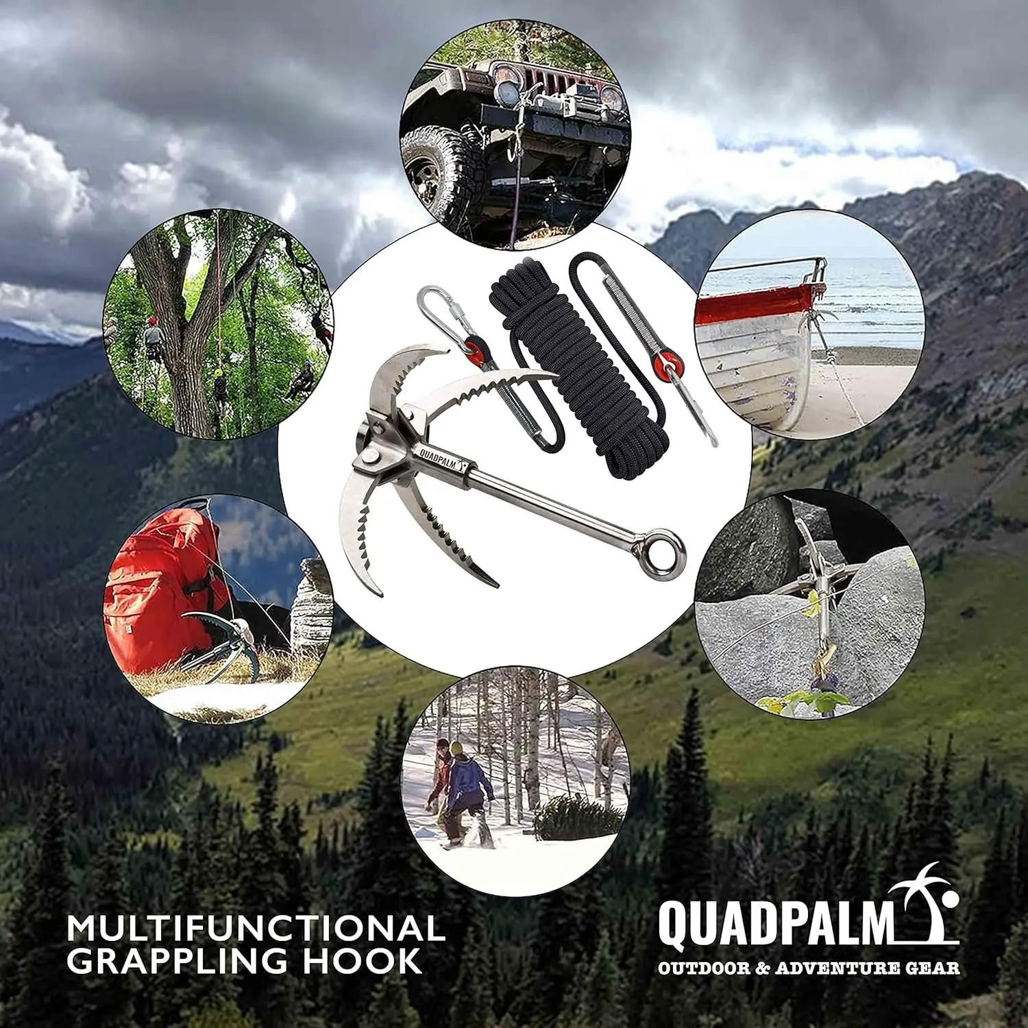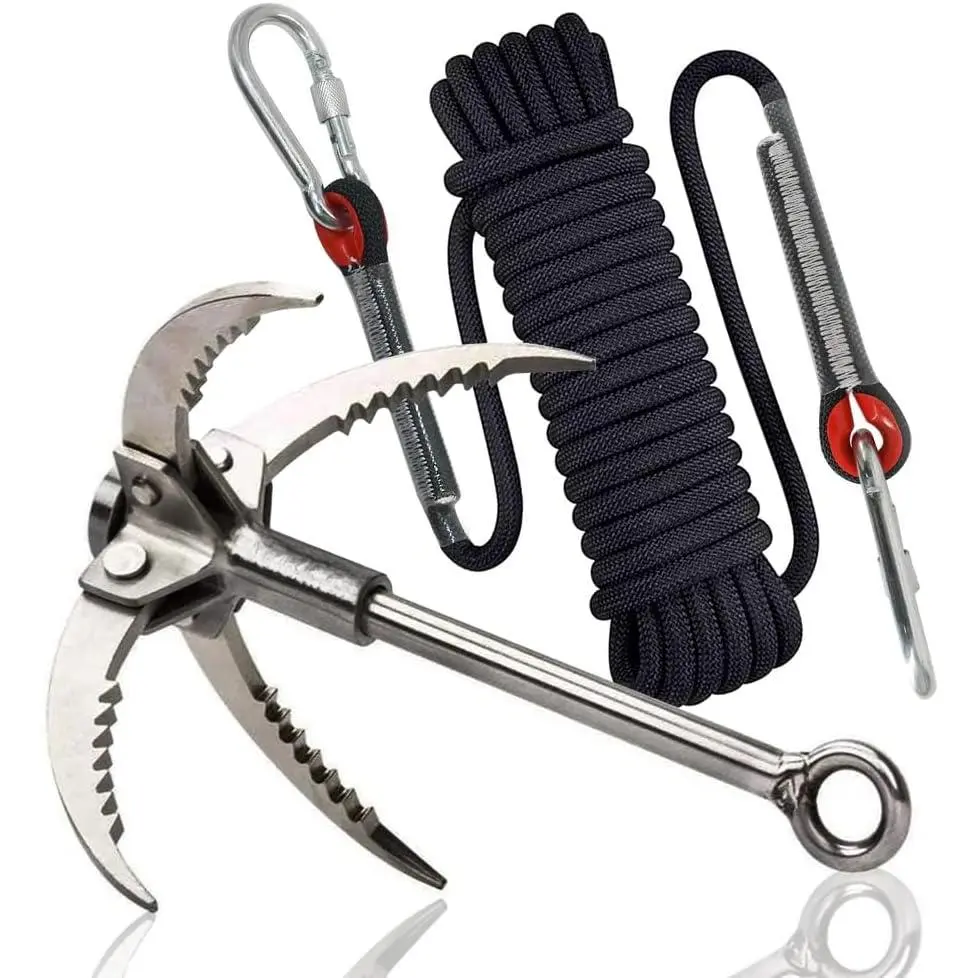Grappling Hook with 10m Rope – Multifunctional Grapple Hook - 4 Stainless Steel Folding Claws - Heavy Duty - Outdoor Camping Hiking Tree Rock Mountain Climbing Equipment