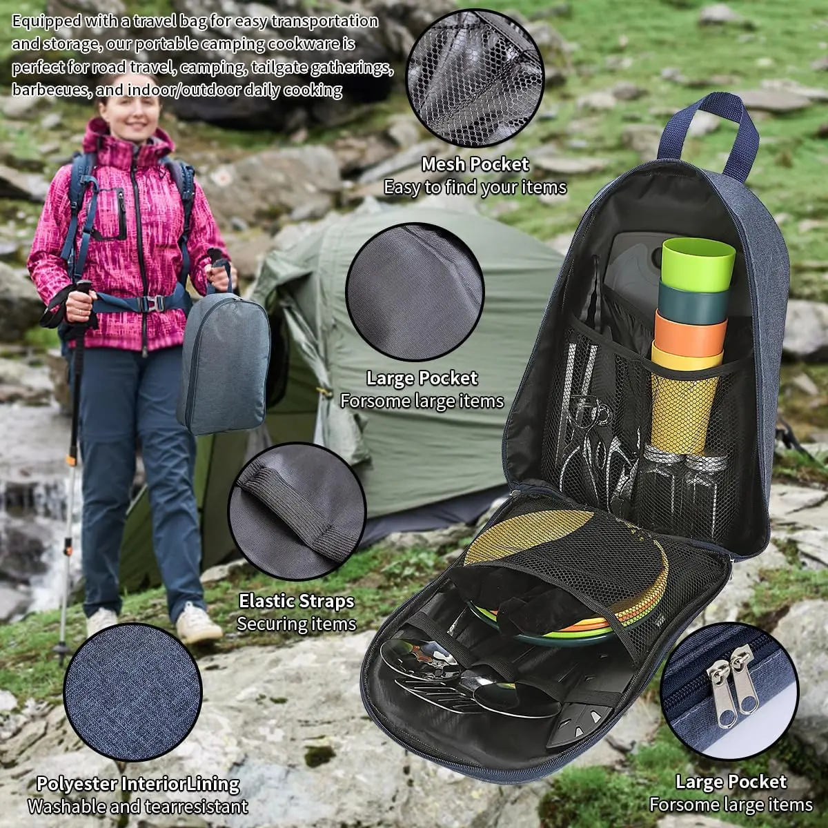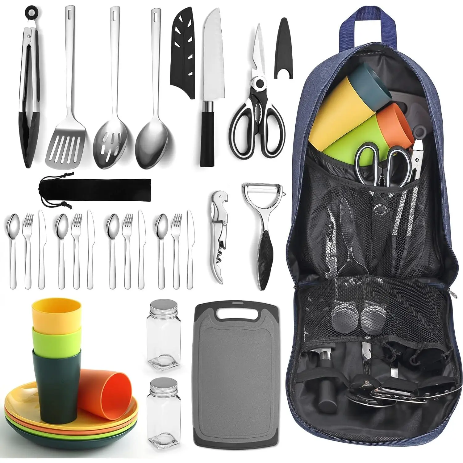 Camping Essentials, Camping Cooking Utensils Set, Camping Accessories Gear Must Haves, Come with Camping Silverware Sets, Plates and Cups, Great for Outdoor Stove, Picnic, BBQ