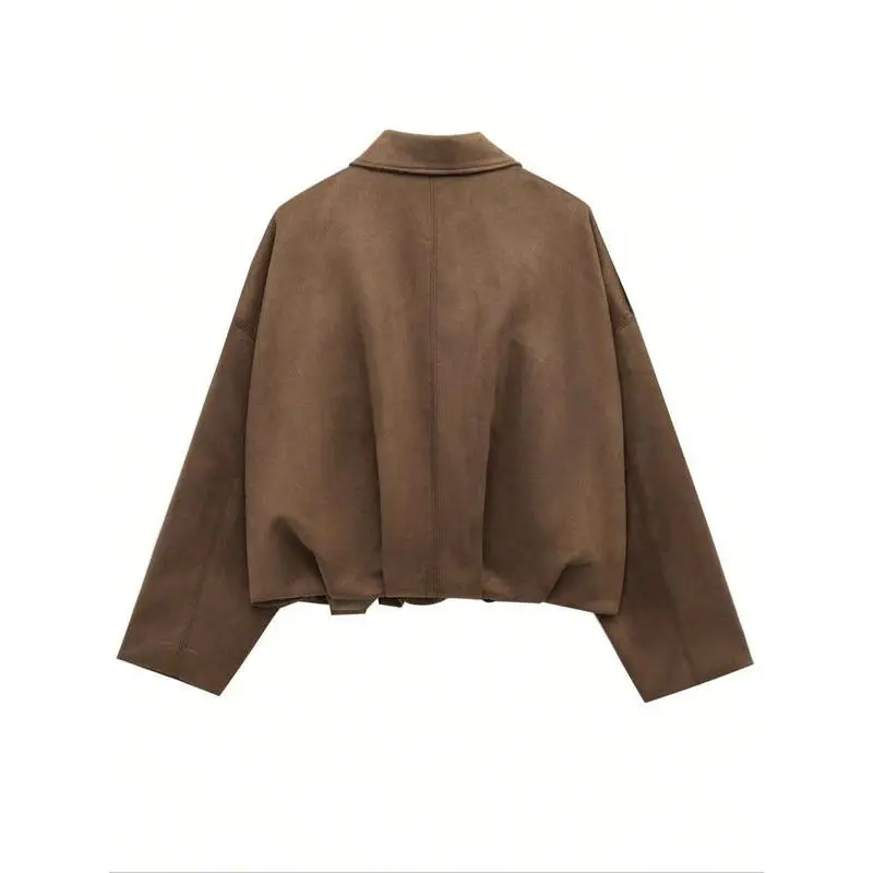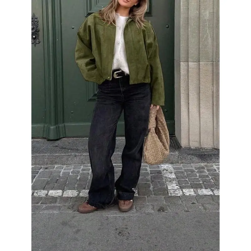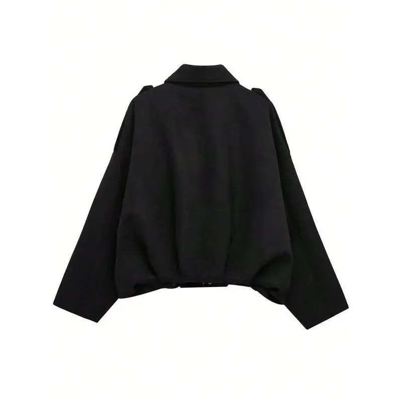 ??Loose-fitting cut??: Features a loose fit, allowing for easy layering over other clothing and enhancing freedom of movement. ??Thick fabric??: Crafted from thick fabric, this jacket provides warmth during spring without compromising on breathability. ??Short length??: The cropped box type silhouette offers a modern touch, adding a contemporary vibe to your wardrobe. ??Plain pattern??: Designed with a plain pattern, this jacket allows for easy pairing with diverse outfits for any occasion. ??Flying collar??: Equipped with a flying collar, offering a unique flair, it elevates your overall look while maintaining functionality.