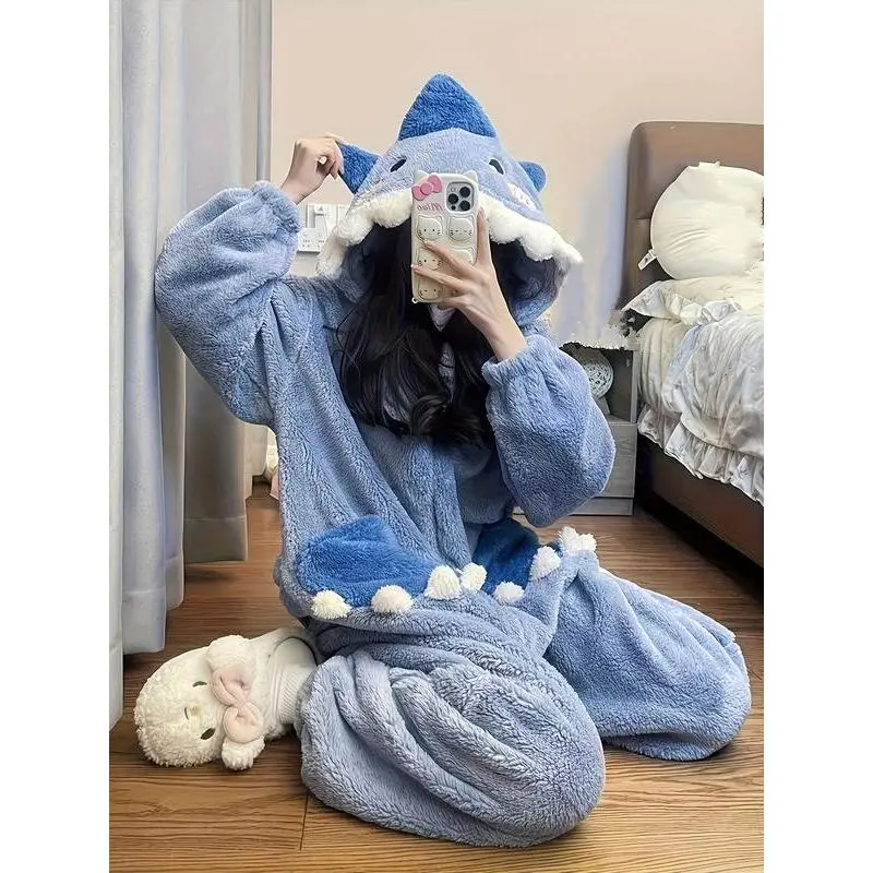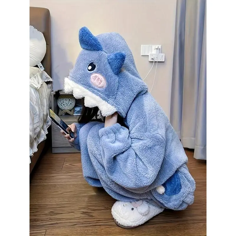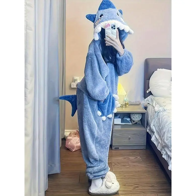 1pcs Women's Cute Cartoon Shark Hoodie Dress, Unicorn Design Winter Role Play Onesie, Christmas Party Casual and Pajamas