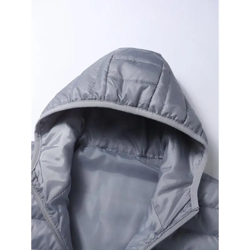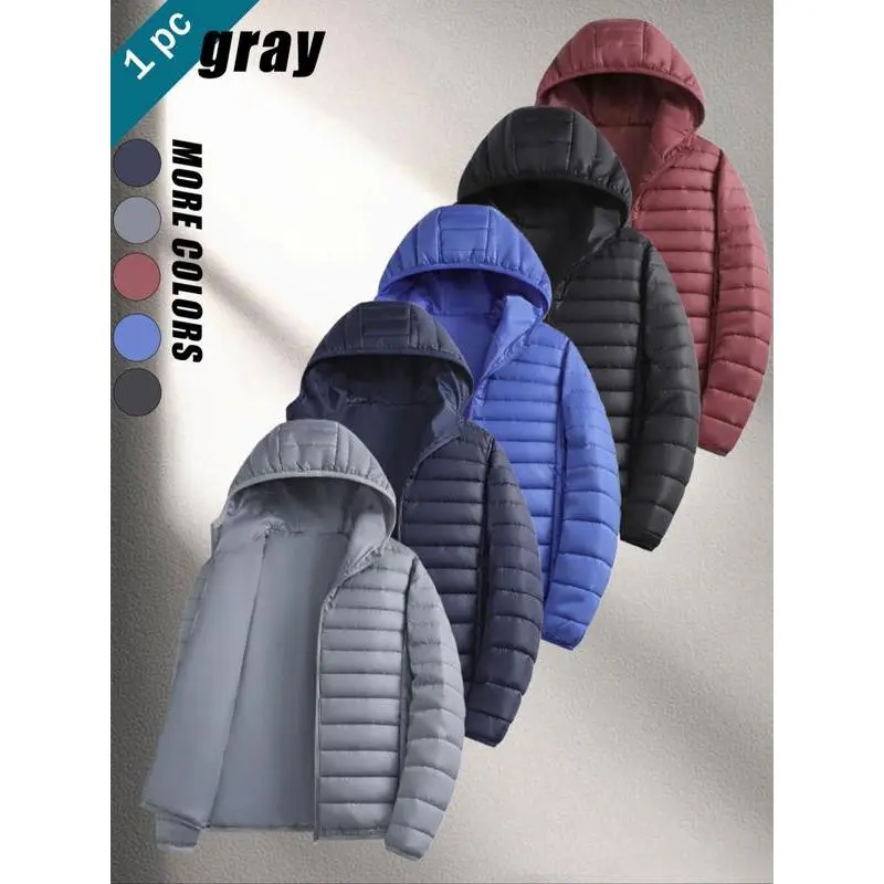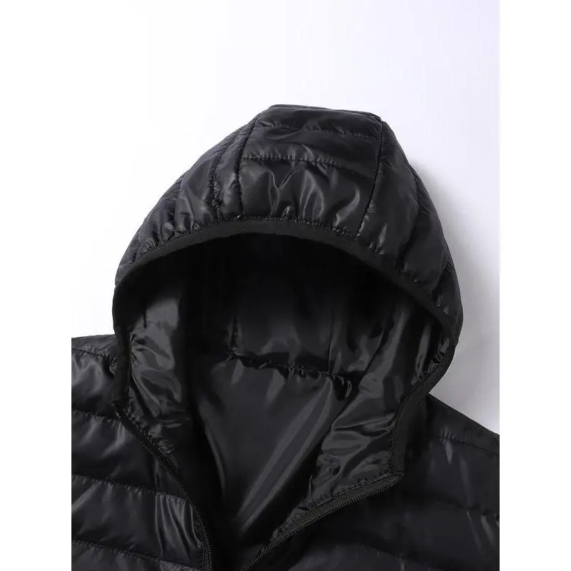 【Lightweight Insulation】: Experience warmth without bulk. This padded jacket offers excellent insulation while remaining light and breathable. 【Hooded Coverage】: The attached hood provides additional warmth and protection from the elements, enhancing overall utility in cold weather. 【Secure Fit】: With a fitted design, this jacket ensures a flattering silhouette while maintaining freedom of movement for various activities. 【Thick Fabric Technology】: Crafted from thick fabric, this jacket is designed for durability and insulation, ensuring you stay warm during fall and winter. 【Plain Aesthetic】: Showcasing a plain pattern, this jacket offers a clean and classic appearance, making it easy to pair with any bottoms.
