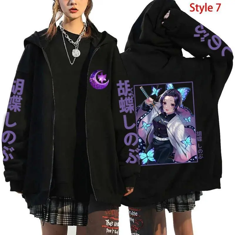 Women Men Fashion Autumn And Winter ?Hoodies Casual Long Sleeve Sweatshirt Coat New Kochou Shinobu Printing Zipper Hoodies?