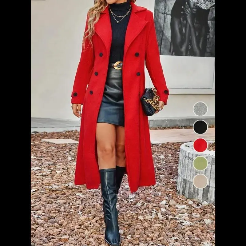 Women'sSolidDoubleButtonLapelWoolenCoat,ElegantLongSleeveLongCoatforWomen,Women'sClothingforAutumn&WinterValentine'sDay,GiftforHer,JacketsforWomen,?Clothes?forWomen