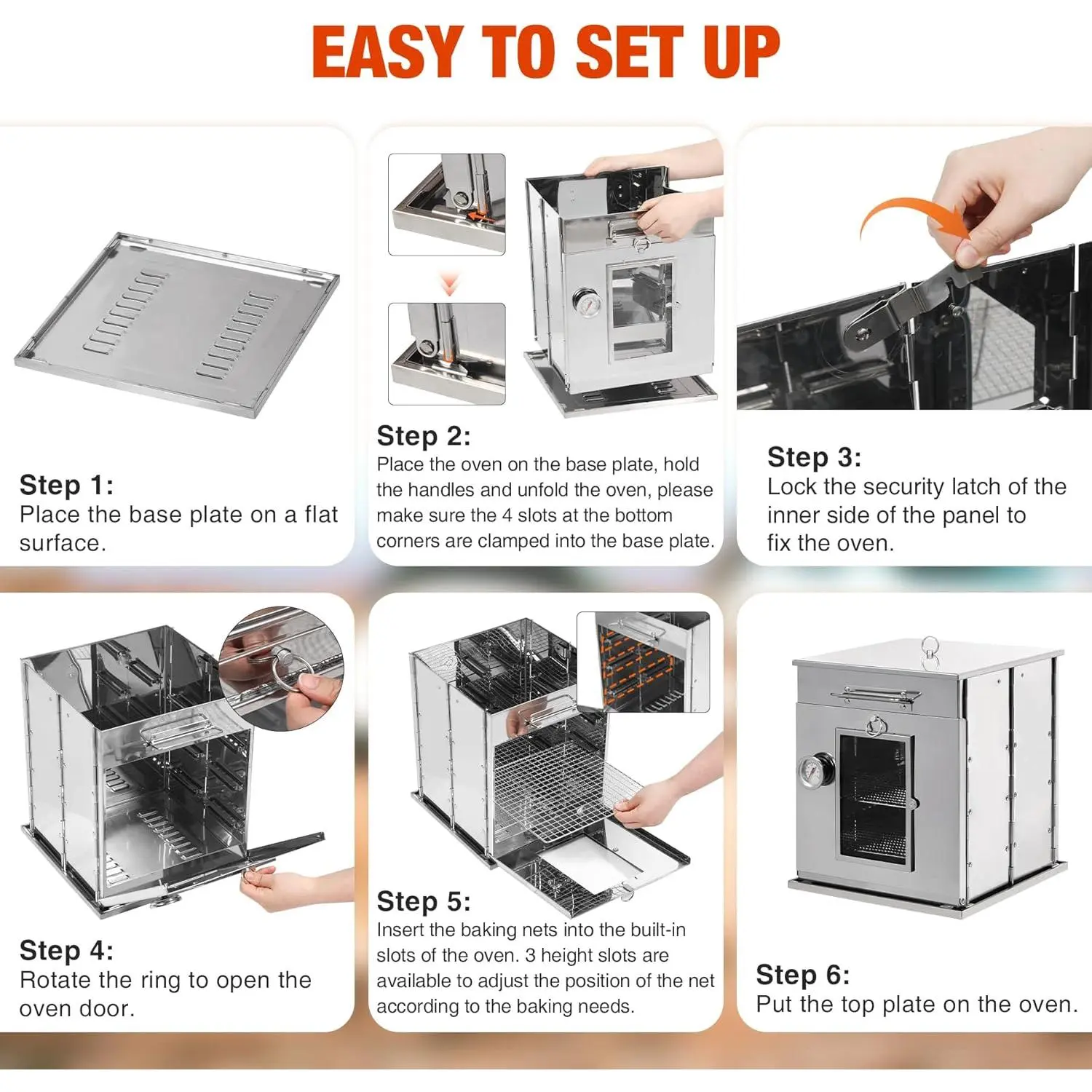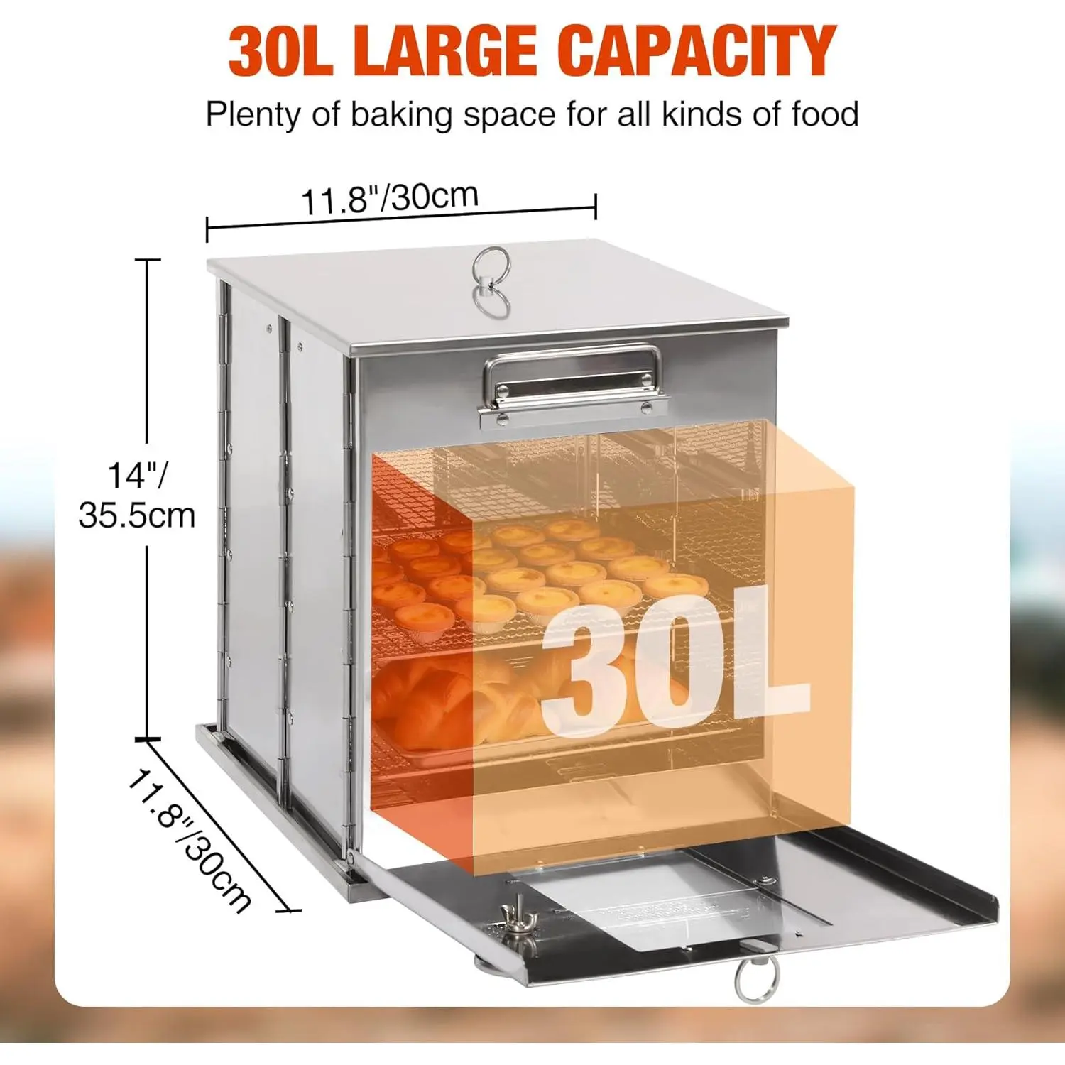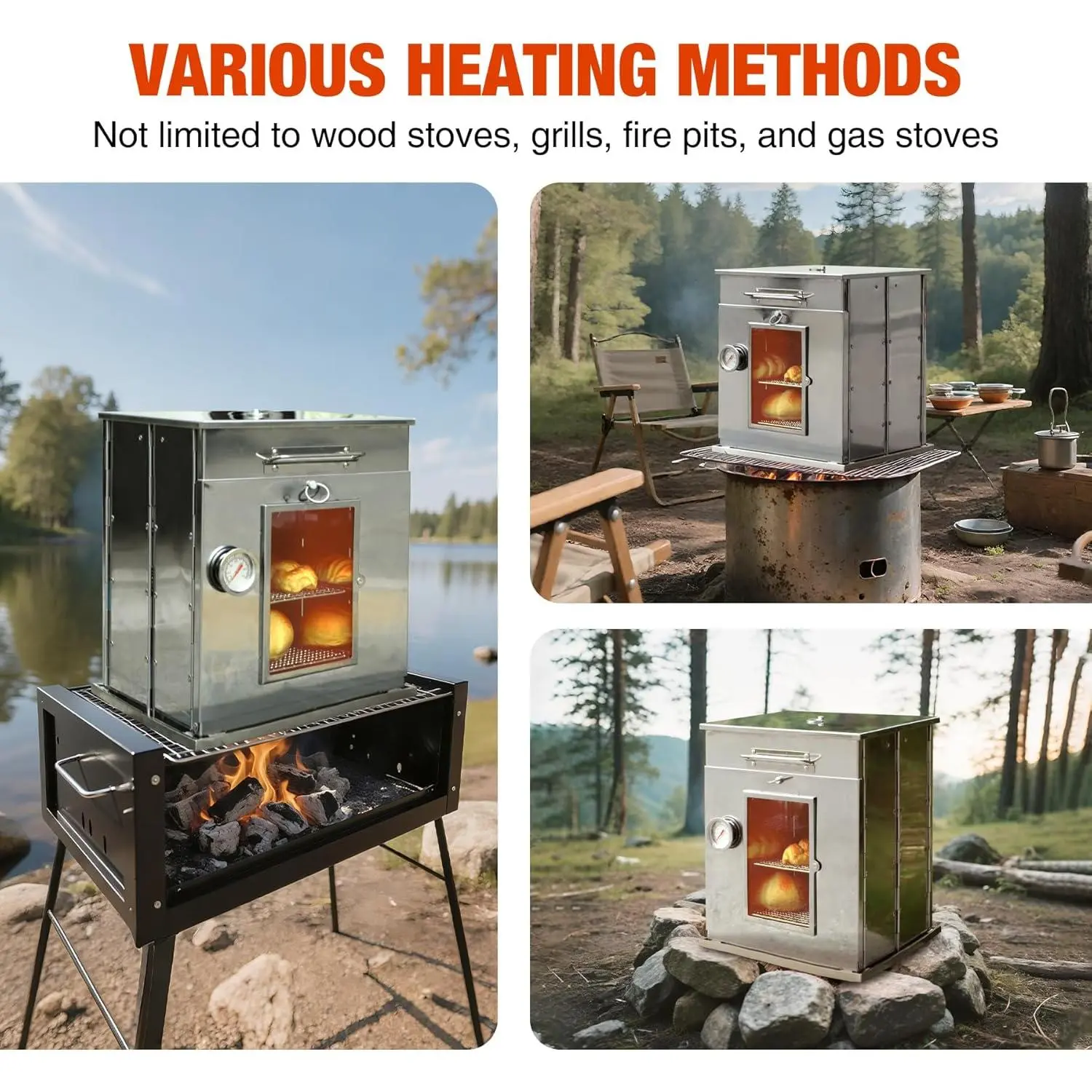 14"H Foldable Camping Oven with 2 Tier Grill, Stainless Steel Portable Camping Stove for Baking Cinnamon Rolls, Breads and Muffins with Wood Burning Fire,Propane Stoves,Campers,Baking BBQ