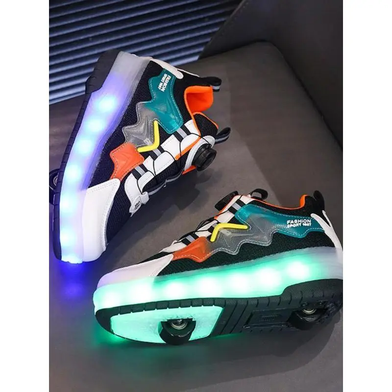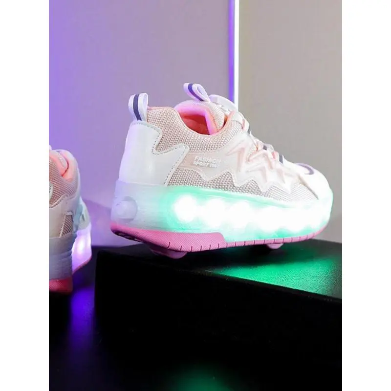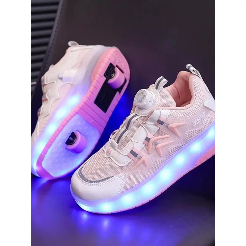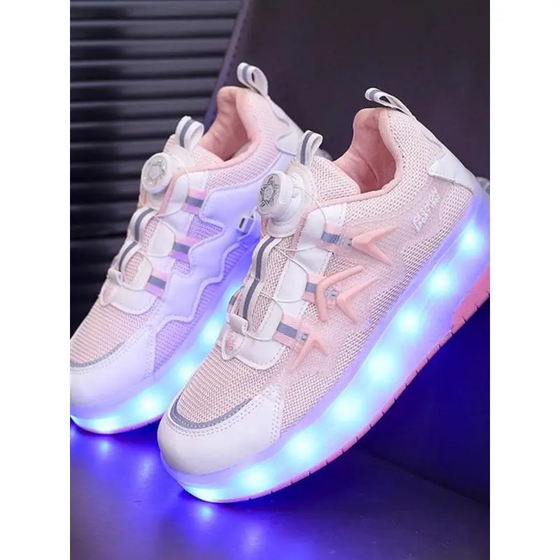 Rechargeable luminous fine needle sports shoes, 2024 new fashionable lightweight walking shoes for men and women, casual sports shoelace wheel design, suitable for daily wear