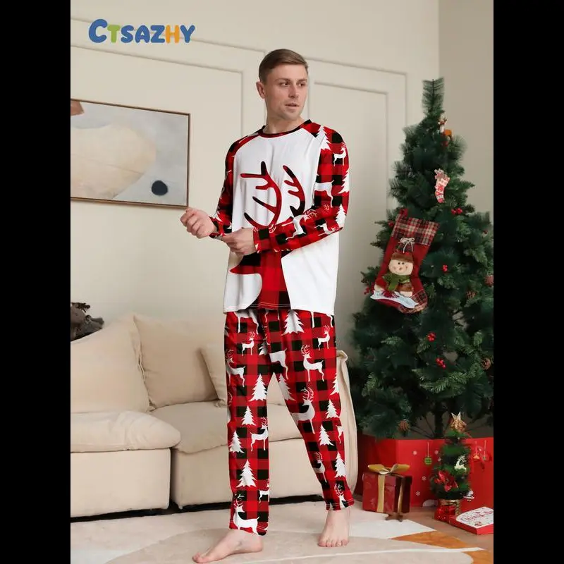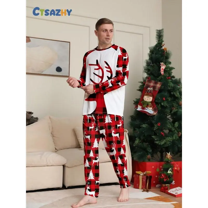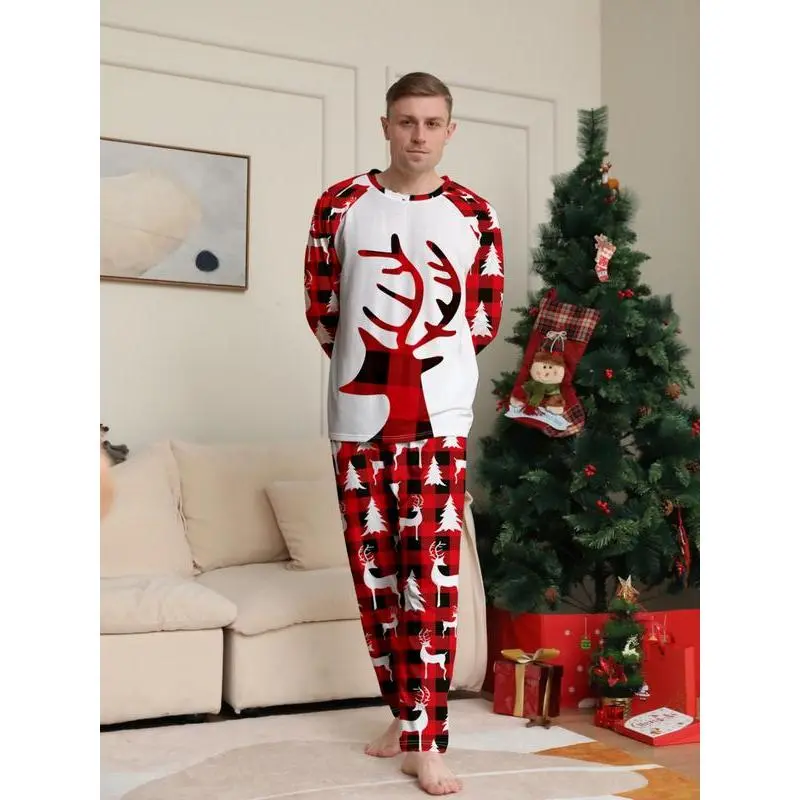 ��Festive Theme��: The Christmas reindeer motif on the top adds a cheerful holiday spirit to your loungewear. ��Unique Materials��: Crafted from thin knit fabric, it ensures lightweight wear, suitable for fall and winter seasons. ��Fitted Cut��: The fitted style provides a tailored look, enhancing your silhouette while maintaining ease of movement. ��Mixed Patterns��: Contrast between white, red, and black plaid on the top and festive printed pants creates a visually striking outfit. ��Long Sleeve��: Featuring long sleeves for added warmth and coverage, perfect for cozy evenings during the colder months.