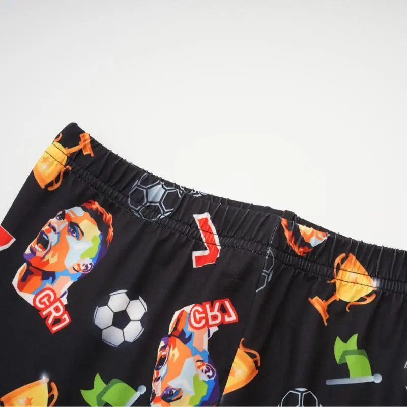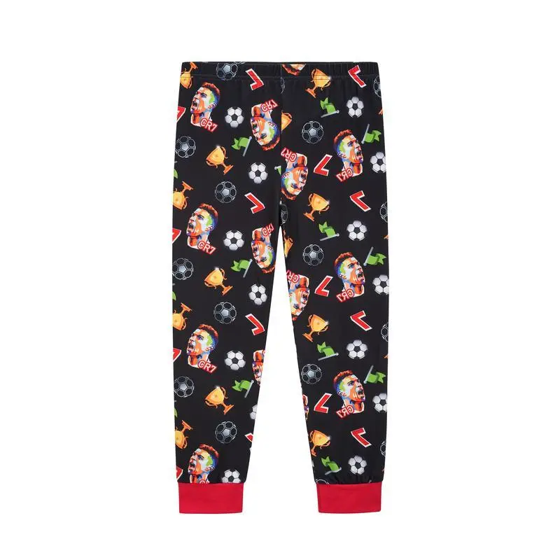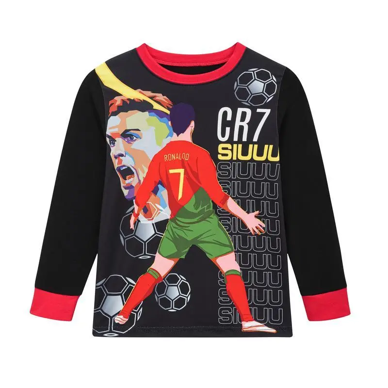 Soccer Star-Inspired Design �C Features a bold, colorful cartoon-style print of a famous football player with "SIUU" graphics. Soft & Comfortable Fabric �C Made from high-quality, breathable material for a cozy and restful sleep. Long Sleeve & Full-Length Pants �C Keeps kids warm and comfortable during cooler nights. Elastic Waistband & Cuffed Ankles �C Provides a snug and secure fit for ease of movement. Perfect Gift for Soccer Fans �C A great birthday or holiday gift for boys who love football and CR7. Let your little soccer fan sleep in style with this CR7-inspired pajama set!Featuring a vibrant cartoon-style print of a famous football player, this two-piece set includes a long-sleeve top and matching pants adorned with soccer-themed graphics.Made from soft, breathable fabric, this sleepwear ensures all-night comfort while keeping your child cozy.The elastic waistband provides a snug yet flexible fit, perfect for active kids.Whether for bedtime, lounging, or a fun gift, this stylish football pajama set is a must-have for young soccer lovers. # CR7 pajamas for kids, boys soccer sleepwear, Cristiano pajamas, football nightwear, SIUU print pajamas, long sleeve soccer pajamas, kids sports pajamas, Ronaldo sleepwear, boys football PJs, soccer-themed nightwear, kids bedtime set, youth soccer outfit, CR7 gift for boys.