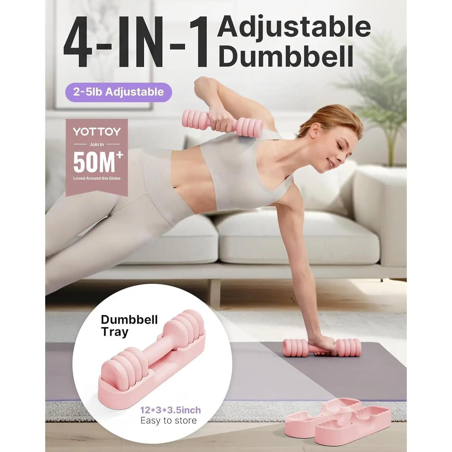Adjustable Dumbbell Set of 2, 4-in-1 Hand Weights for Women at Home, Compact Free Weights Dumbbells Set with Soft Grip and Base, 2-5 lbs Each for Home Gym