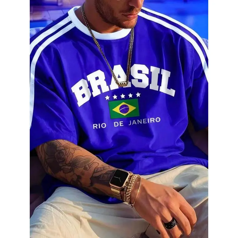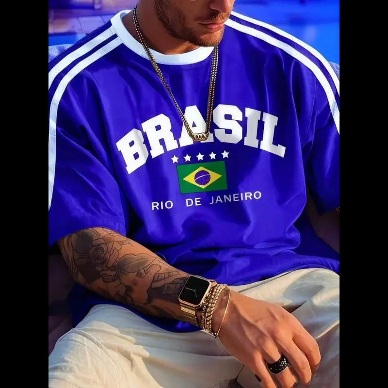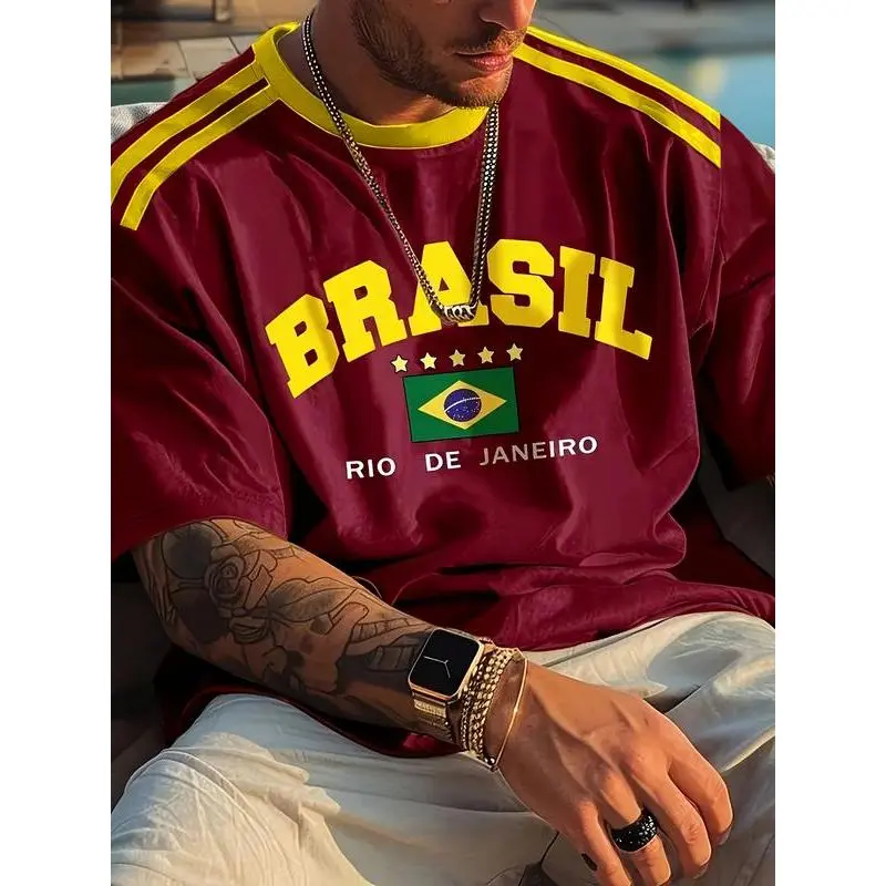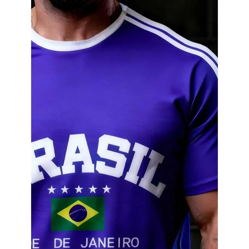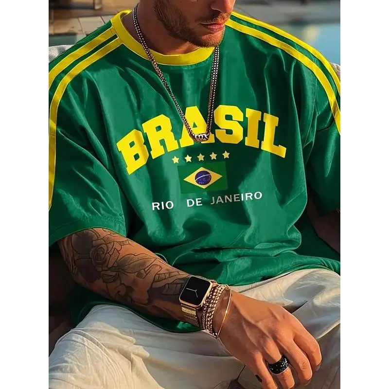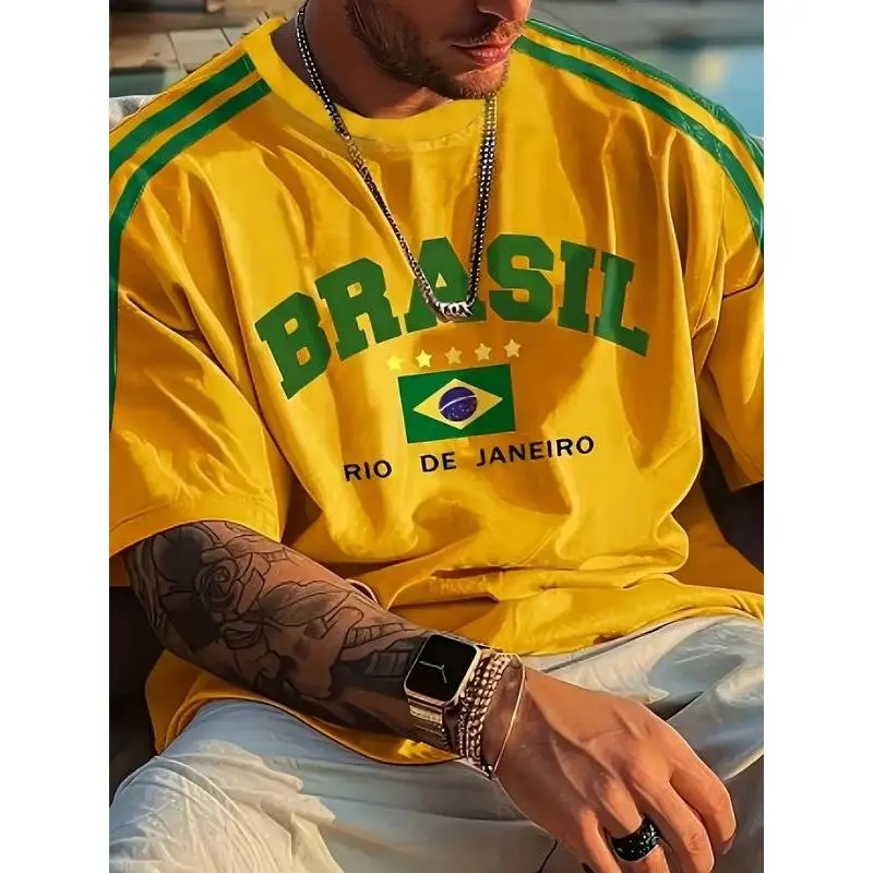 Brazil Football Fan Jersey World Cup Short Sleeve Shirt, Trendy Sports Style, Breathable Athletic Top, Breathable Quick-Dry Soft Fabric, Casual Long Fit Tee