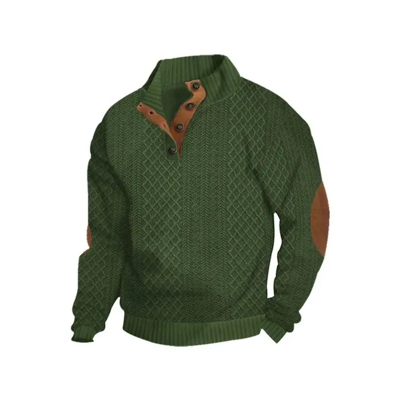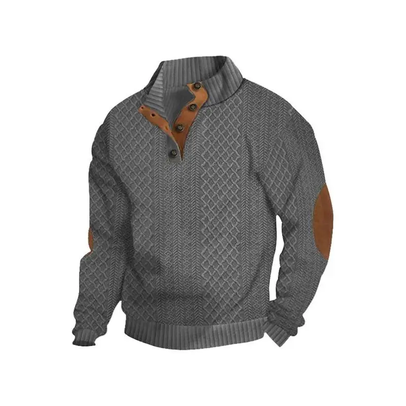 A men's knitted jacquard long-sleeved Henley hoodie, comfortable fabric, casual style, suitable for men's daily in autumn and winter, essential for men's gatherings and dates.