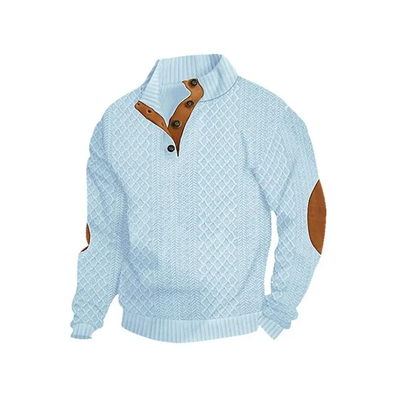 【Retro Appeal】: The half-open neckline, complemented by textured brown buttons, embodies a vintage charm that distinguishes it from typical shirts. 【Warmth Provision】: Features pleated elbow cuffs that enhance warmth while contributing to an upscale aesthetic for cooler seasons. 【Moderate Fabric Thickness】: Constructed with moderate thickness for optimal warmth during fall and winter, suitable for various layering options. 【Fitted Cut】: The fitted silhouette of this shirt offers a refined look, ensuring a polished appearance for gatherings and outings. 【Knit Fabric Category】: Crafted from high-quality knit fabric, this shirt provides a soft texture, enhancing the overall wearing experience.