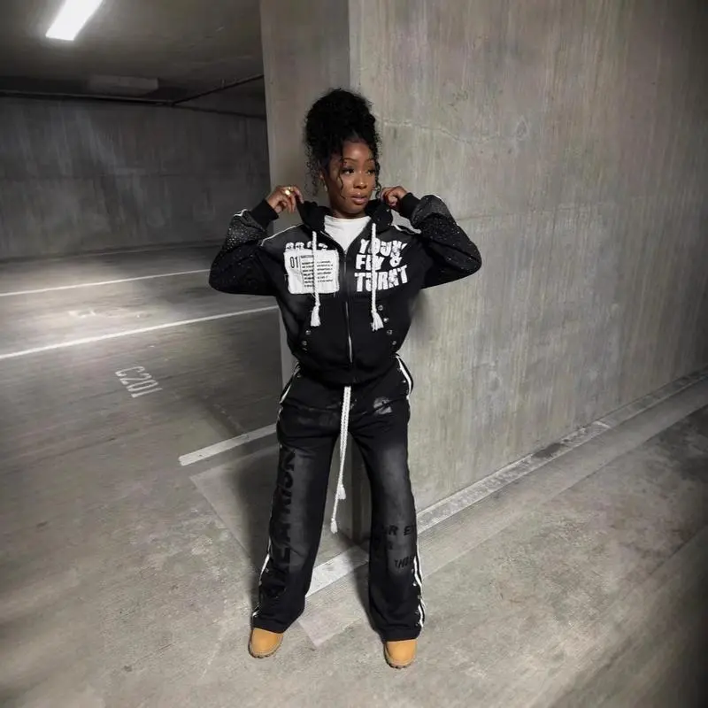 Item number: WY154355Pattern: 3d EffectStyle: CardiganVersion: RegularCombination Form: Single PieceLength: Ordinary (50cm Sleeve Length: Long SleeveSleeve Type: Regular SleeveCollar Type: No CollarThickness: MediumPopular Elements: 3d/Stereo PatternCraft: PrintingYear of Listing/Season: Winter 2024Fabric Name: PolyesterMain Fabric Composition: Polyester (Polyester Fiber)Color: Pink Top, Black Top, Pink Pants, Black Pants, In Stock, Black Suit, Pink SuitSize: S,M,L, XlStyle Type: Street HipsterPlacket: ZipperMain Fabric Component Content: 70% (Inclusive)-80% (Exclusive)Style: Hip Hop StyleCross-Border Style Type: Personality StreetApplicable Gender: FemaleCross-Border Supply Or Not: YesProduct Category: Sweater/Fleece ShirtMain Downstream Sales Area 1: Europe and AmericaMain Downstream Sales Area 2: Middle East