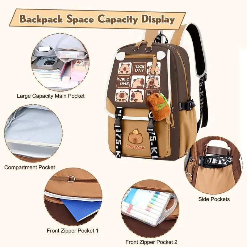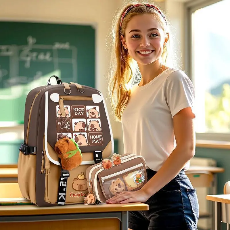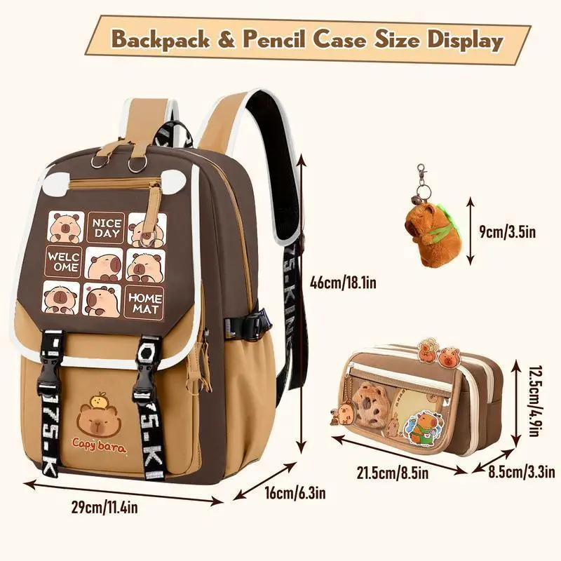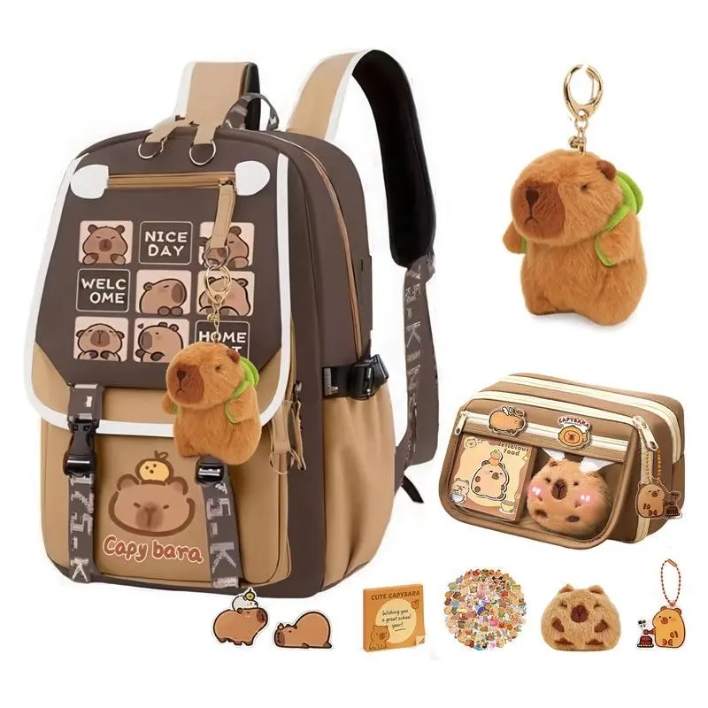 ?? Adorable Capybara Backpack Set Make school more fun with this adorable Capybara-themed backpack set! Designed for those who love cute and playful styles, this set includes: This charming set includes: This practical and irresistibly cute set is ideal as a back-to-school gift or a birthday surprise! ??