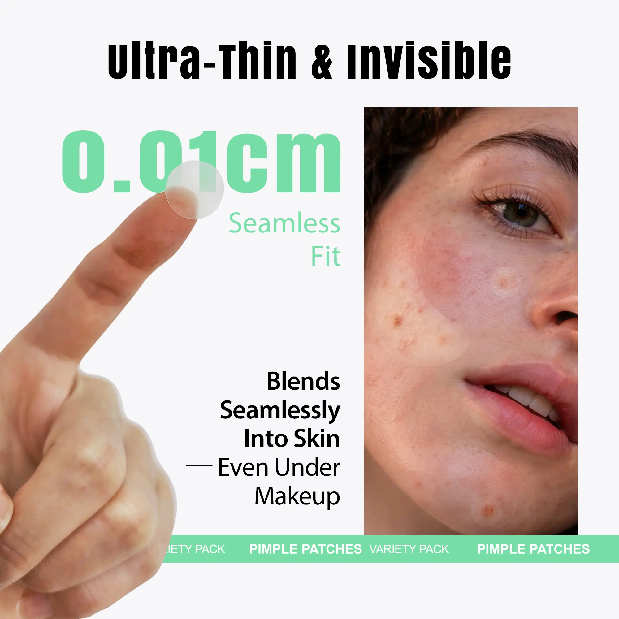·[Invisible & Sticks Comfortably] These patches feature a 0.01cm edge thickness, blending seamlessly with all skin tones. They stay put through workouts, showers and sleep with moderate stick adhesion, yet peel off cleanly without residue. Wear them day or night, invisible under makeup, for discreet spot treatment.
