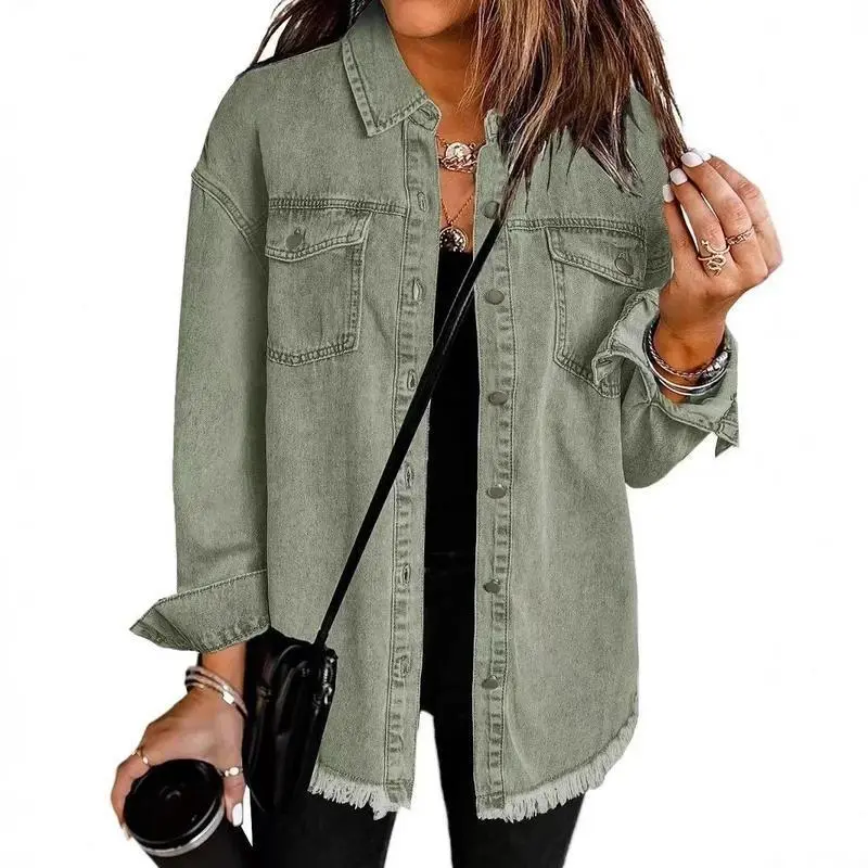 Design:Woolen SweaterSleeve length: long sleeveClothing Length:Ordinary (50cmSleeve Type:Conventional SleevePattern:Solid colorEmbellishment:Woolen SweaterStyle:Personalized Streets,Street Style,Street European and American Style: This European and American Style Women's Shirt Coat, Embracing the Latest Fashion Trends, Is Very Suitable for Autumn and Winter Seasons. Street Style: Stand out on the Street with Its Edge Hem Design to Add a Touch to Your Wardrobe. Washed Denim Material: This Shirt Jacket Is Made of Washed Denim, Providing Soft and Comfortable Feeling While Maintaining Durability. Button Closure: This Shirt Jacket Uses Classic Button Closure to Ensure a Firm Fit and Easy to Wear. All-Match Season Wear: This Shirt Jacket Provides Warmth and Fashion in Cool Months, for Autumn and Winter.