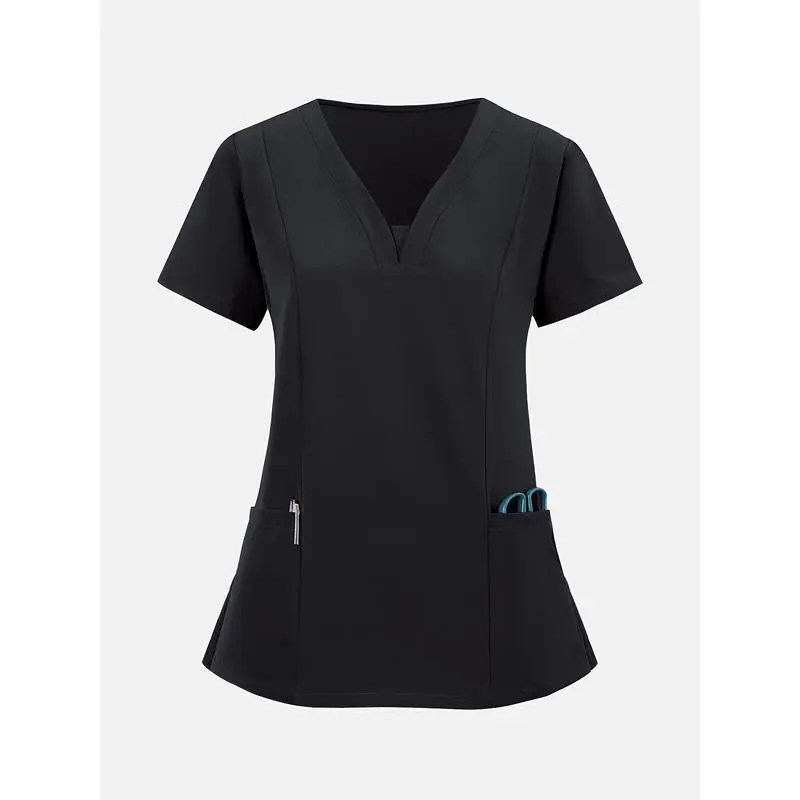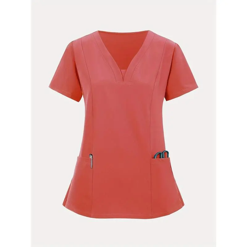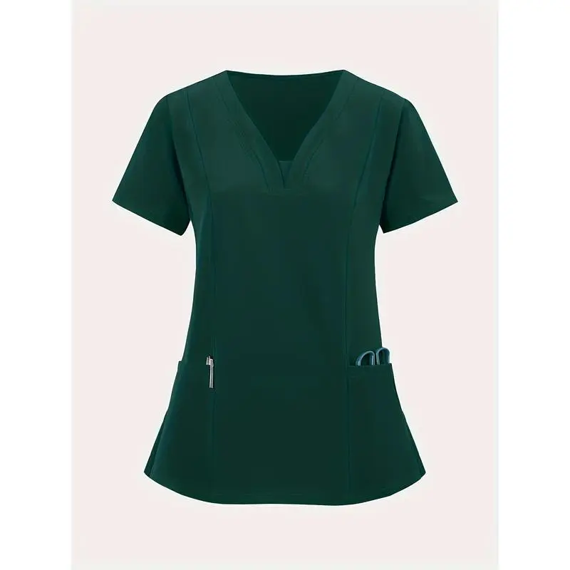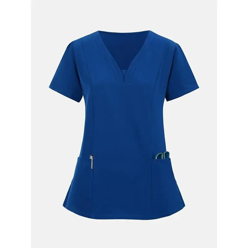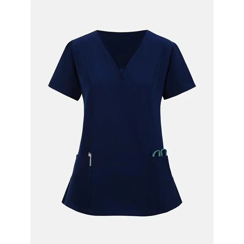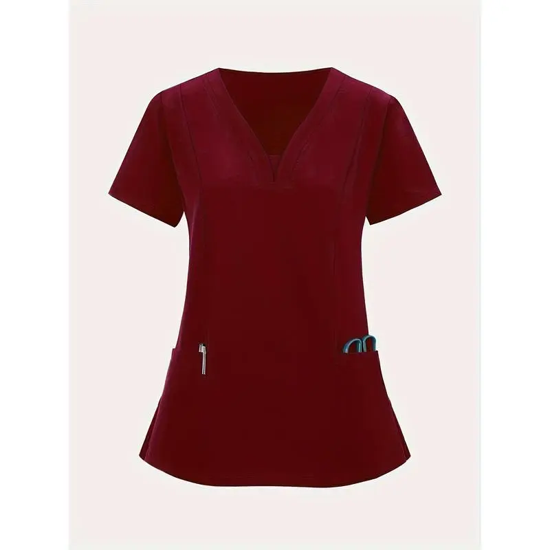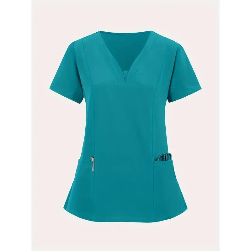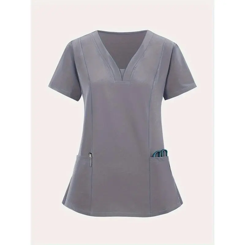 [BreathableV-NeckScrub]StretchyBreathableV-NeckScrub-CasualShortSleevewithPocketsNursing,Running,Exfoliating,WorkClothesWomenswear