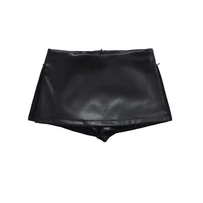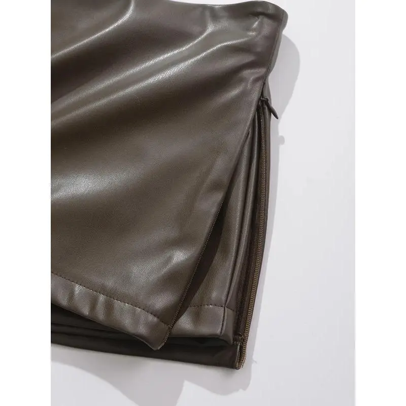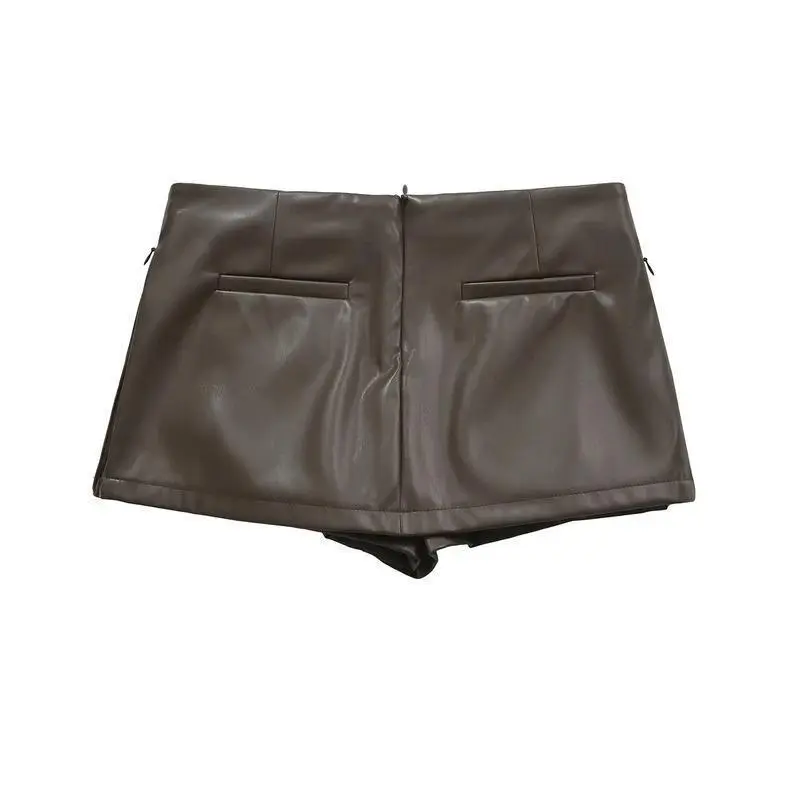 BlackMiniSkirtsElegantKoreanFashionFauxLeatherSkirtsForWomanLowRiseSkirtsSplitLeatherSkirtWithShortsBrownWomenswearBottomN0.1316
