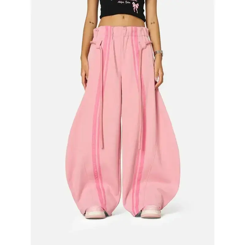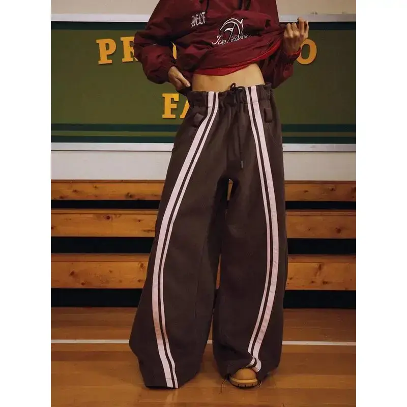 Embellishment:StripesStyle:Y2K,Work,Classic,Vintage,Basics,Party,Holiday,,,Retro,Preppy,Minimalist,Cute,Korean,Japanese,Elegant,Chic,Boho,,Athletic,Casual,Season:All Seasons,Winter,,,AutumnMaterials:CottonWaist Height:Low WaistSize Type:Plus SizeHoliday/Occasion:CasualClothing Type:Baggy SweatpantsClosure Type:DrawstringOccasion:Casual Stripe Baggy Sweatpants ✨Elevate Your Style with Comfort!✨ The "Striped Extra Wide Leg Bucket Pants" redefine casual wear.These pants offer a relaxed, bucket hat fit with a stylish striped design.Ideal lounging or making a statement, they're a fusion of comfort and uniqueness. Material: 60% cotton, 40% polyester. Clothing: Rope decoration adds a unique. These pants are unisex, perfect all.The blend of cotton and polyester ensures durability and comfort. Perfect Every Occasion These sweatpants are versatile, suitable settings. The elastic waist and wide leg design provide a flattering fit. Embrace the fusion of style and comfort . Step out in these bottoms that turn heads effortlessly!