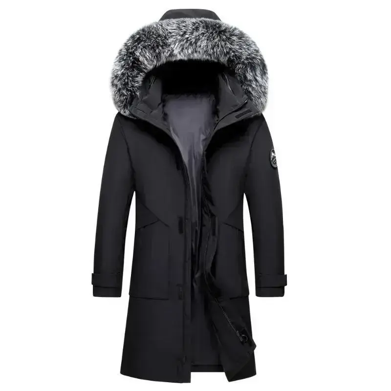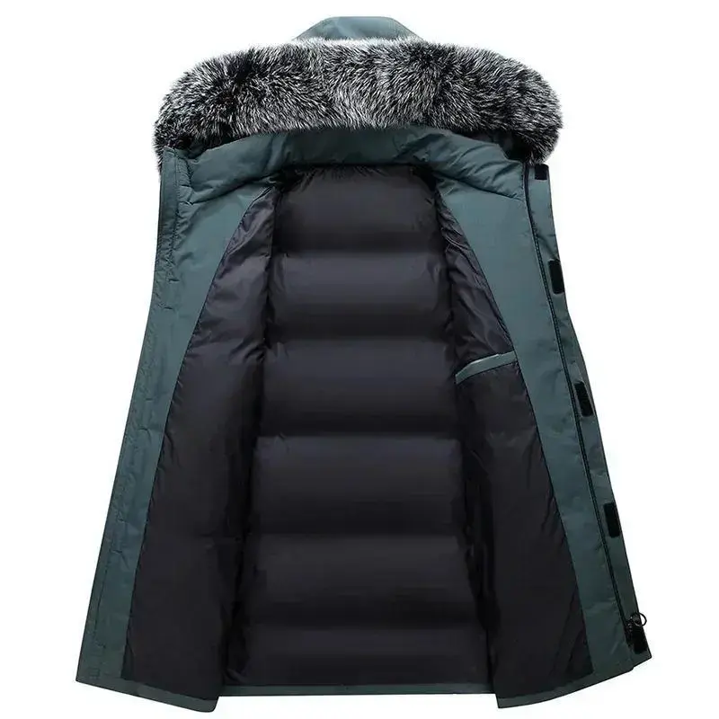 Mens Warm White Duck Down Hooded Jacket Parkas Multi Pockets Overcoat Male Winter Long Men Windproof Down Jacket Coats