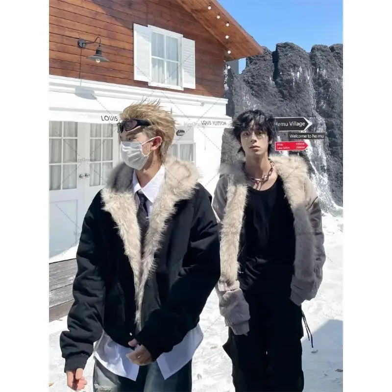 Women's jackets and windbreakers High Street Trendy Y2K Streetwear Parkas Punk Harajuku Retro Fur Collar Bomber Jacket Men Hip-hop Loose Casual Warm Coat Women Womenswear TopsGift