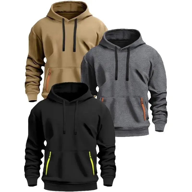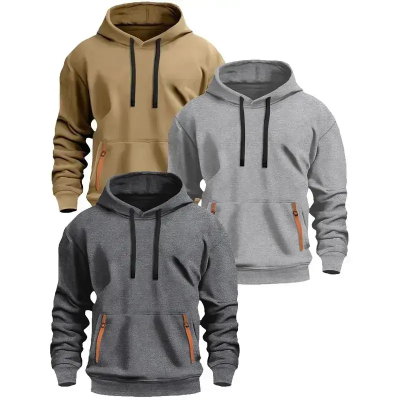 3 men's fleece hoodies -220g heavy-duty casual pullover with adjustable drawstring pockets, kangaroo pockets and ribbed cuffs, machine washable for autumn and winter (smoky brown, grey brown, black) | casual style hoodie | machine washable hoodie
