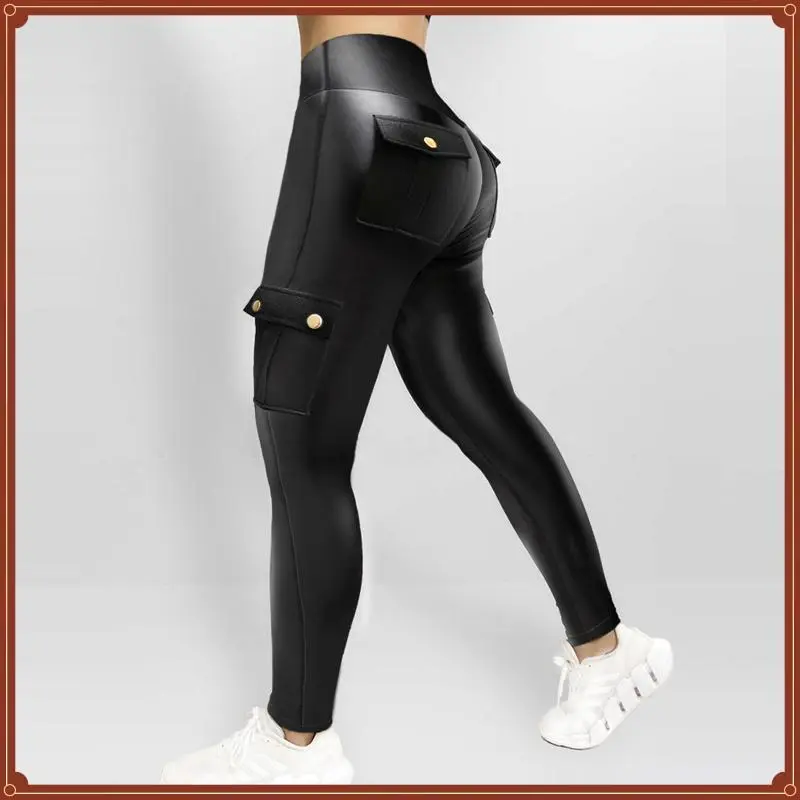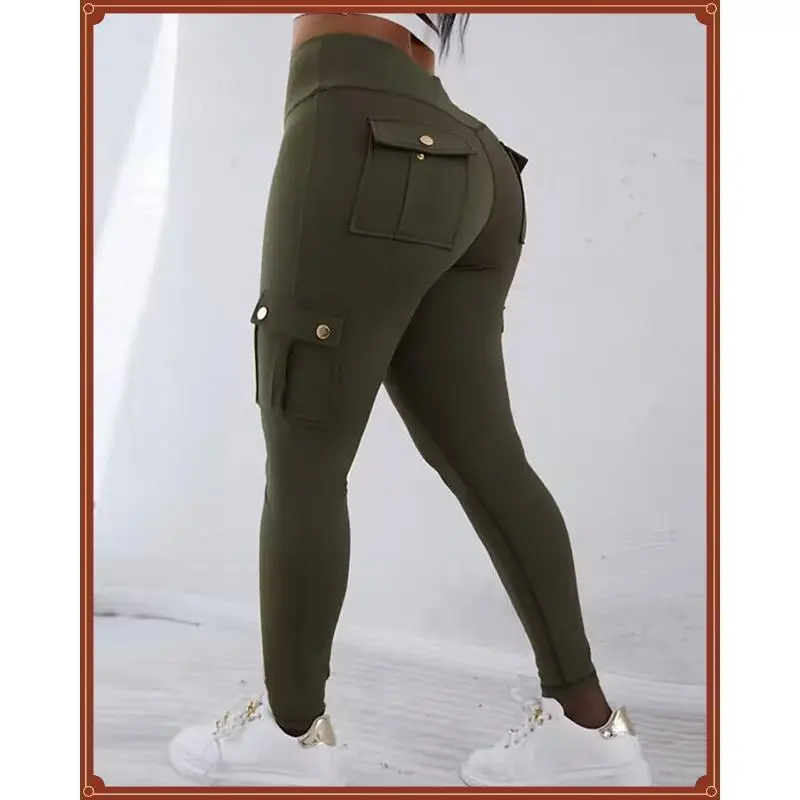 Womens Butt Lifting with Flap Pockets High Waist Tummy Control Workout Cargo Leggings Yoga Pants