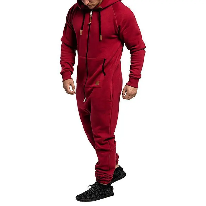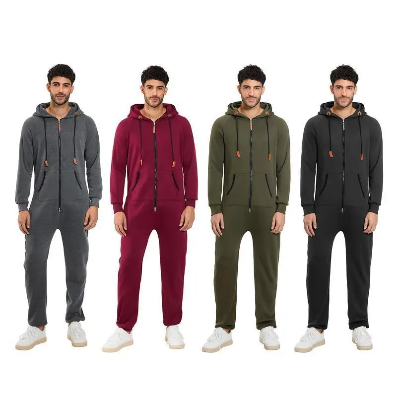 Men's Fleece-Lined Jumpsuit - Hooded Long Sleeve Full-Zip Overalls with Kangaroo Pockets | Winter Workwear, Thermal Coverall, Outdoor Work Suit, Heavy Duty Overalls, Cold Weather Gear Can be used with raincoat