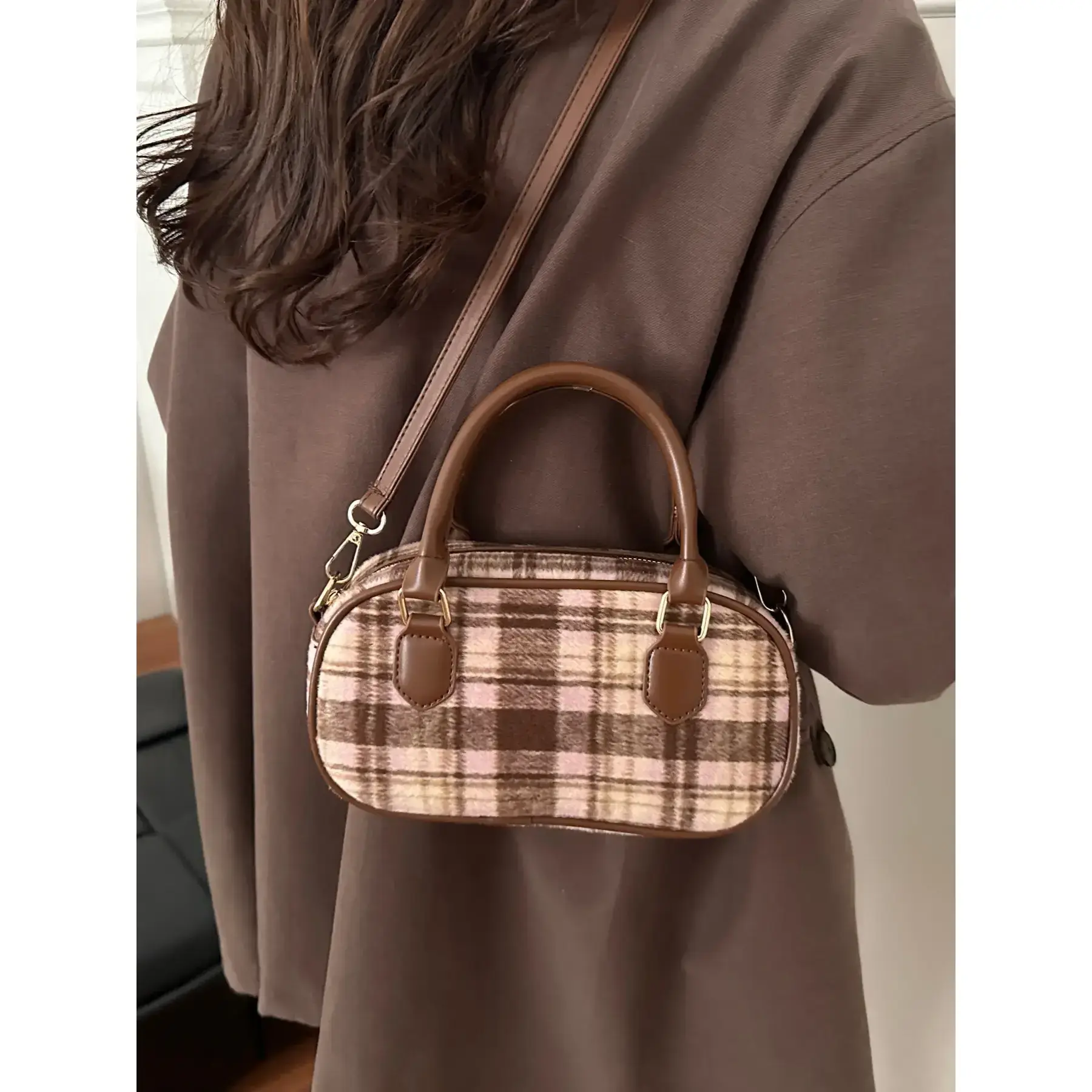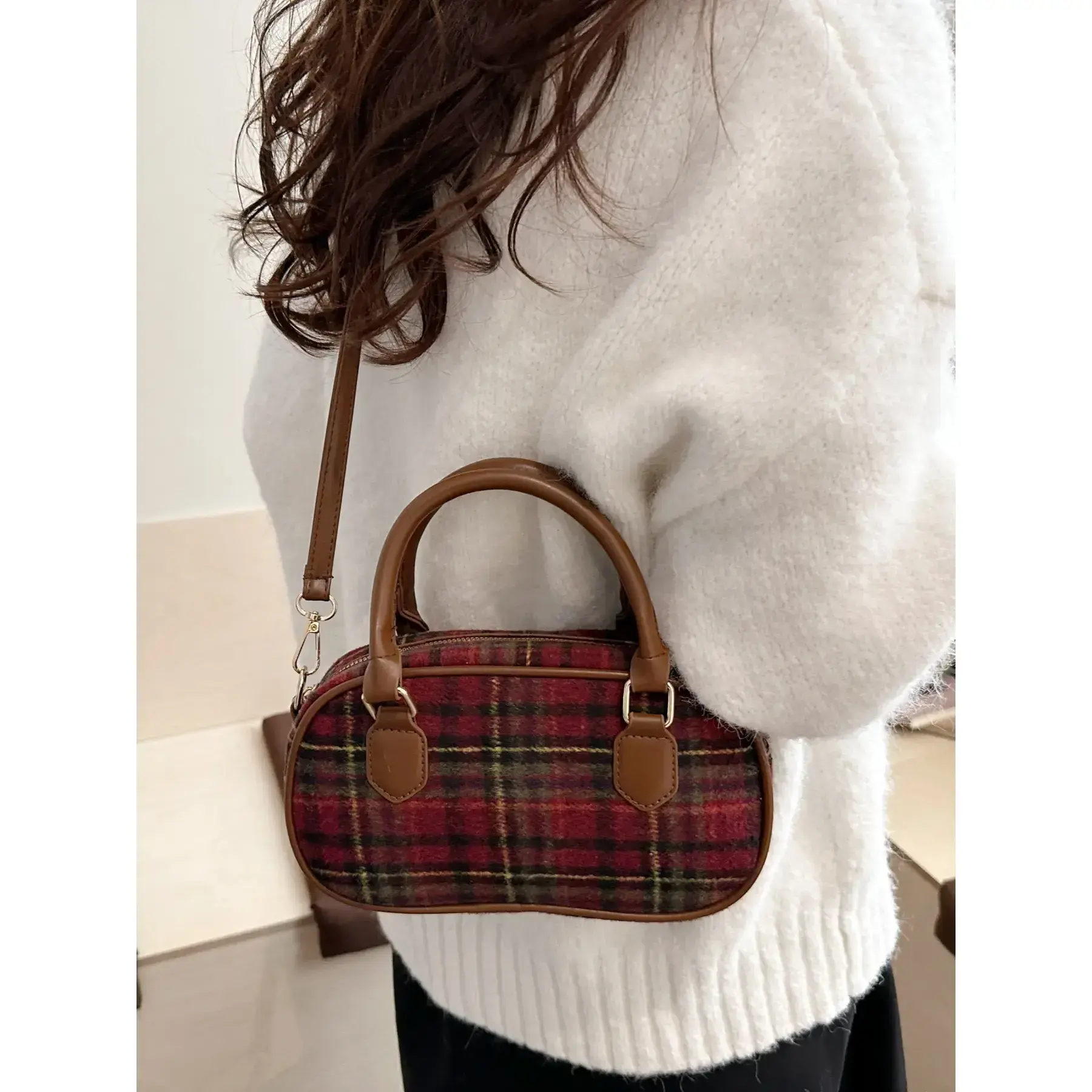 Christmas Vintage Plaid Handbag, Women's Holiday Check Crossbody Bag, Cute Small Shoulder Bag with Leather Decor, Cross Body Bags, Ideal Christmas Gift