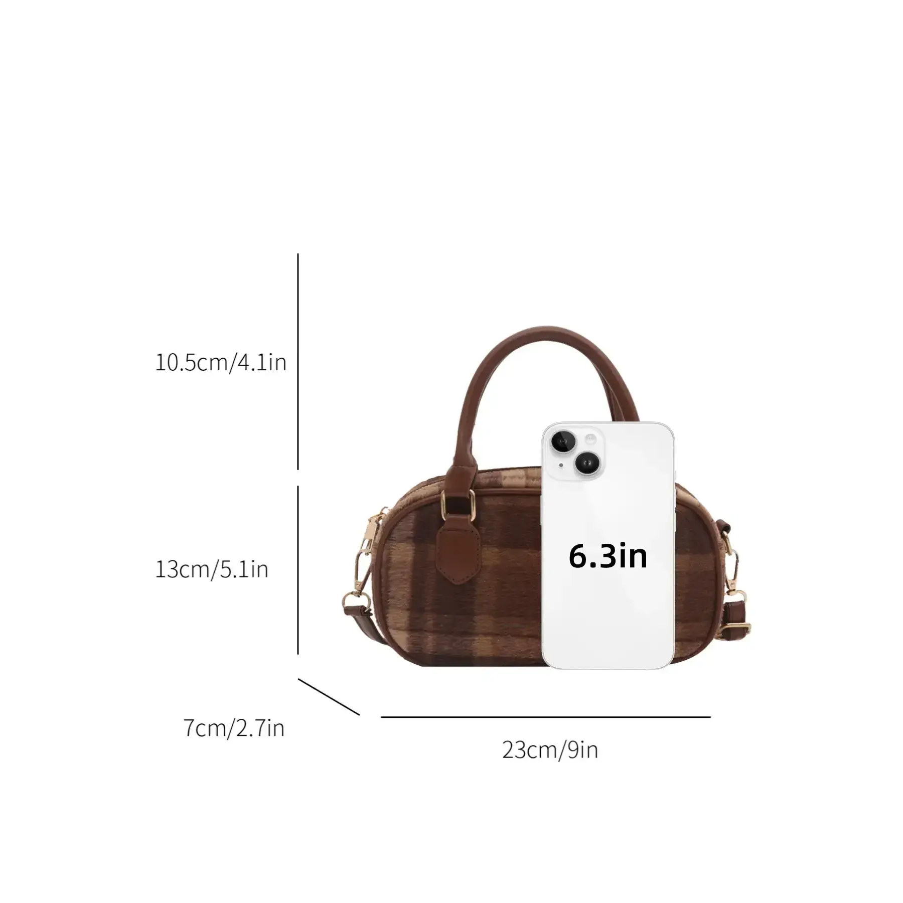 【Vintage Plaid】: Features a charming vintage plaid pattern, embodying festive spirit and enhancing holiday-themed outfits. 【Leather Accents】: Includes leather decorations that add a touch of sophistication to its playful design, elevating its overall appeal. 【Compact Size】: Small yet functional, providing ample space for essentials without excessive bulk, ideal for holiday outings. 【Versatile Usage】: Can be used as a handbag or a crossbody, offering flexibility in how you carry it throughout the day. 【All-Season Appeal】: Designed for all seasons, making it a reliable accessory that can transition beyond just the holiday period.