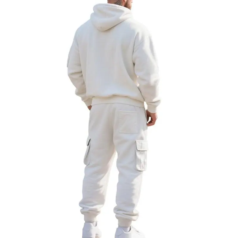 【Thick Fabric】: Constructed from a thick knit, ensures warmth and durability during fall and winter activities. 【Half-Zip Feature】: Incorporates a half-zip design on the hoodie, allowing for adjustable ventilation and ease of wear. 【Fitted Cut】: Offers a fitted silhouette, providing a tailored look without compromising on freedom of movement. 【Above Ankle Length】: The pants feature a below-the-ankle length, suitable for pairing with a variety of footwear options. 【Practical Pockets】: Equipped with utilitarian pockets on the pants, these allow for secure storage of essentials during activities.
