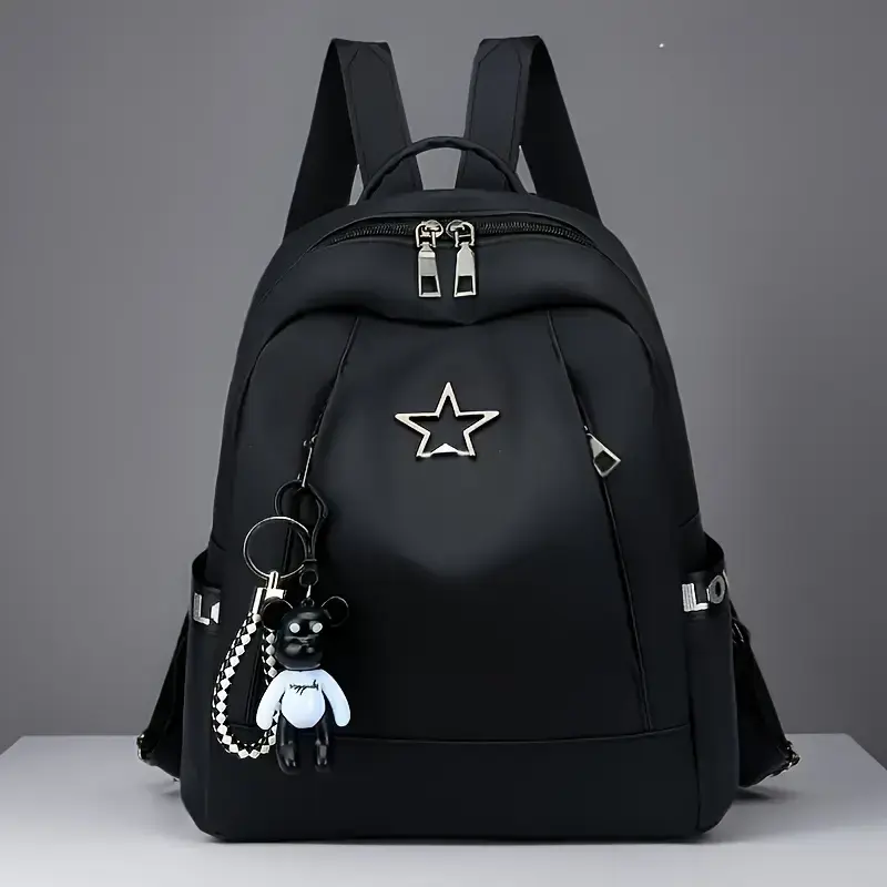 Chic Large Capacity Women's Backpack, Adjustable Straps, Durable Polyester Daypack with Bear Charm - Perfect for Travel & School