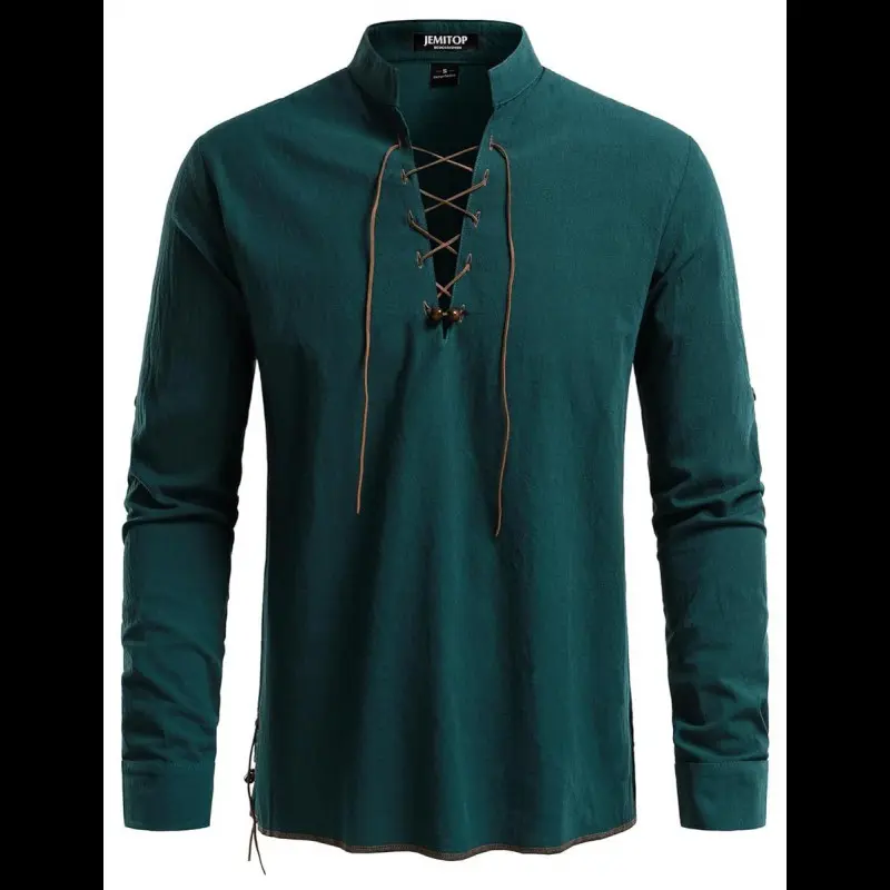 Easy Care: Machine wash or hand wash in cold water / Do not bleach / Air dry or tumble dry/Design Concept: Contrast color drawstring design with 2 vintage beads / Colored buttonholes and hem trim / Mandarin collar / Long sleeve / Rolled sleeve / Regular fit / Exquisite retro top/Vintage Textured Fabric: 100% Cotton / The delicate and raised texture feels great, and paired with the quaint design, the shirt looks more retro/Suitable for Every Occasion: Daily casual / Cosplay / Halloween / Activity / Party / Festival / Stage / Performance / Show / Drama / Opera / Movie / Beach / Christmas/Size: US size / Before purchasing, please carefully check our size chart information to ensure you are getting the right item