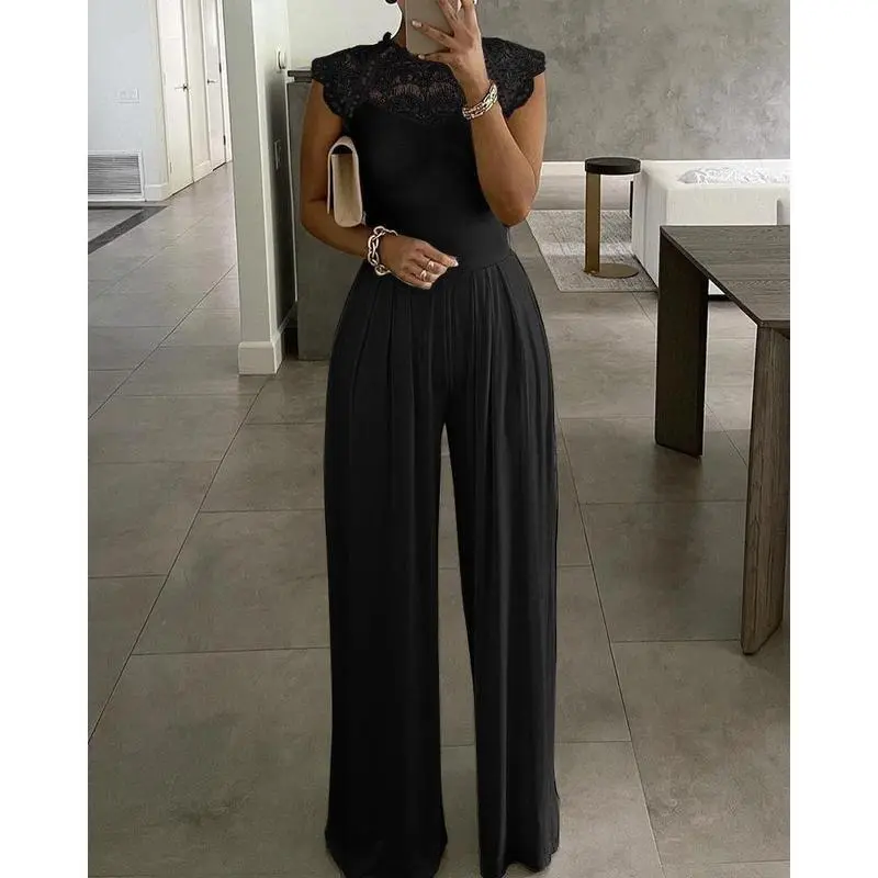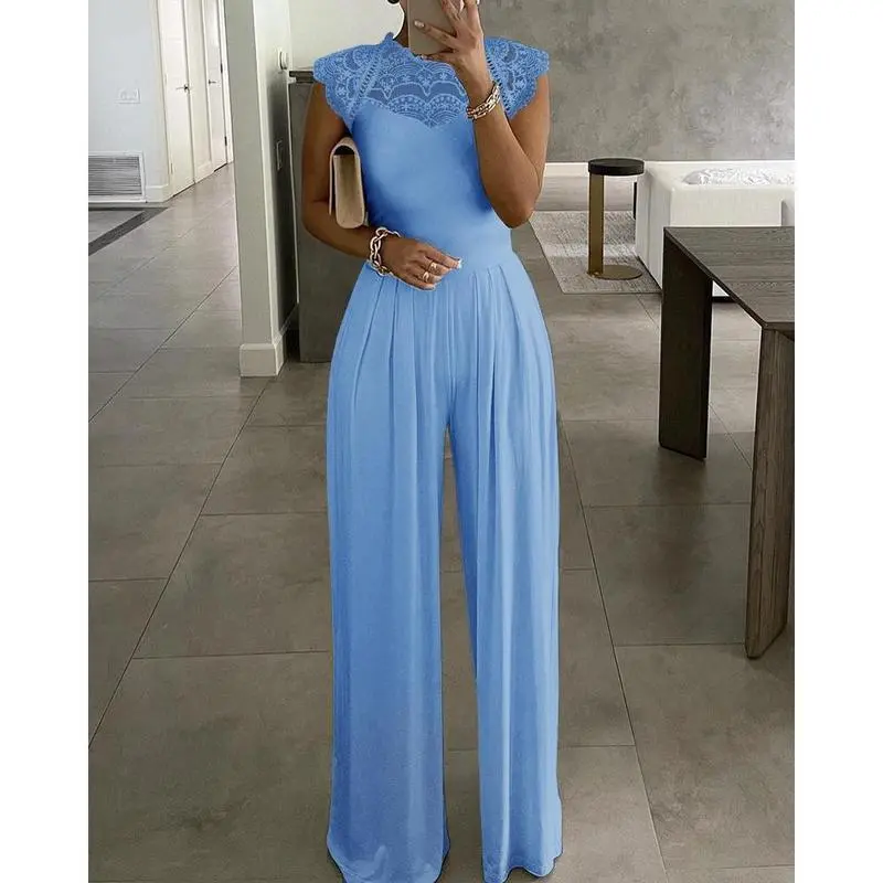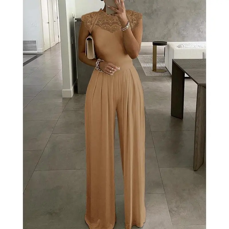 2025solidcolorjumpsuitforwomenFashionloosecasuallacejumpsuitforwomen