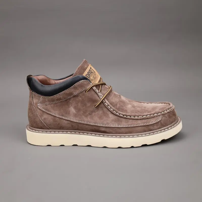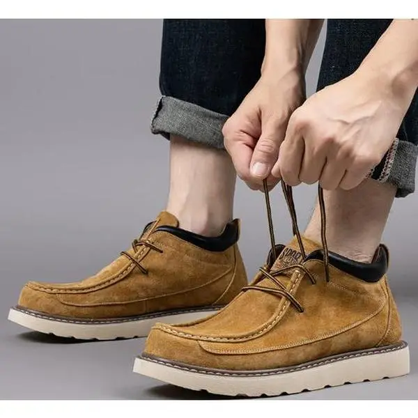 A Pair of Men's Casual Derby Shoes and Oxford Boots-Solid Color All Season Ankle Boots with Split Brown Boy Footwear Closed Nail Round Toe Western Leather Rubber