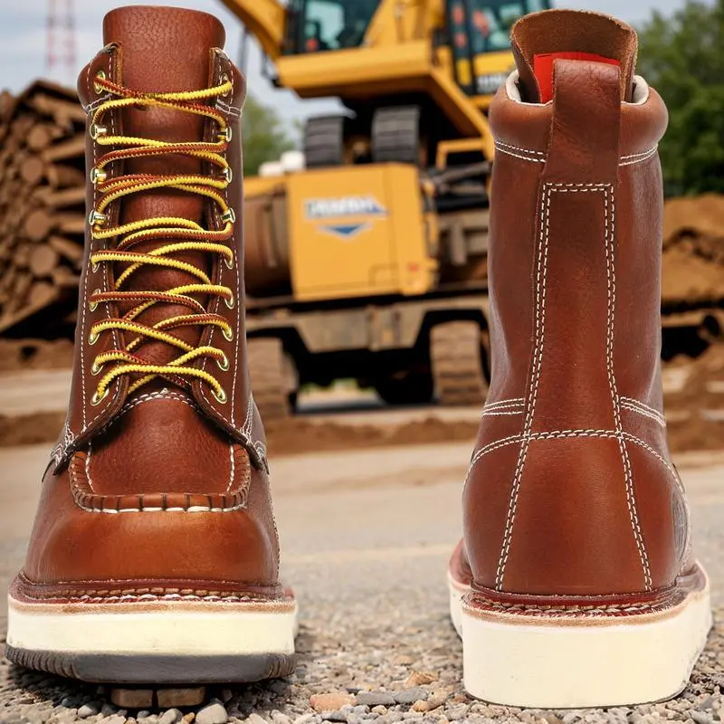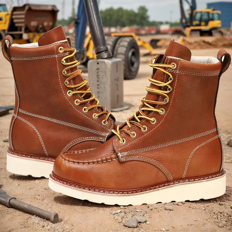 Inner Material:Leather,RubberInsole Material:Rubber,Leather,etc. ), TPRSole material:Rubber,PU Leather,Artificial leather,TPR,Rubber(TPE, TPR, etc. )Upper material:Rubber,LeatherMaterials:Rubber,Leather The SureTrack soft toe work boots are designed with your comfort in mind.Featuring a double layer of cushioning and a soft pigskin lining, these boots cradle your feet, offering all-day comfort and protection.The full-grain leather upper ensures durability and a secure fit. [Durable Steel Shank Support] Built to last, these boots include a steel shank for extra sturdiness, ensuring your feet are supported on even the toughest terrains.The traditional double welt construction adds durability, making these boots ideal for heavy-duty work environments. [Reliable Traction & Stability] The oil and slip-resistant outsole offers reliable traction, making these boots safe for various work environments.Whether you're on slippery surfaces or rugged terrain, the SureTrack boots provide the stability you need to stay on your feet. [Long-Lasting Durability] Thanks to the traditional welt construction, these boots offer superior wear resistance and moisture sealing.The leather welt securely connects the upper leather to the insole and outsole, ensuring these boots are built to last. [All-Day Comfort with COOLMAX] Designed for long hours of wear, these boots feature COOLMAX fiber technology that wicks moisture away and controls odor, keeping your feet cool and comfortable.The double layer cushioned insole and soft pigskin lining add extra comfort throughout the day. [Sturdy & Rugged Construction] With a durable EVA outsole and traditional double welt construction, these boots are built to withstand tough working conditions. Whether you're on the move or stationary, the SureTrack boots provide reliable protection and comfort. The above content is a detailed product introduction.