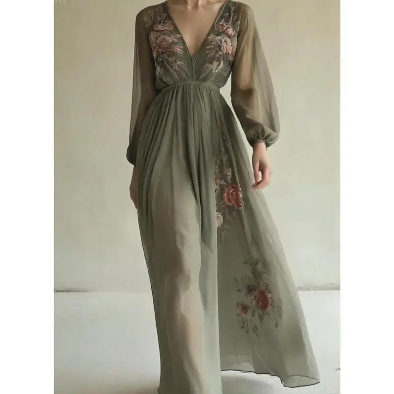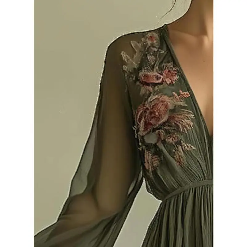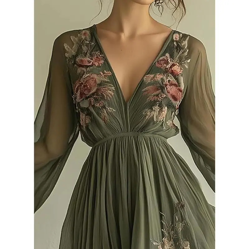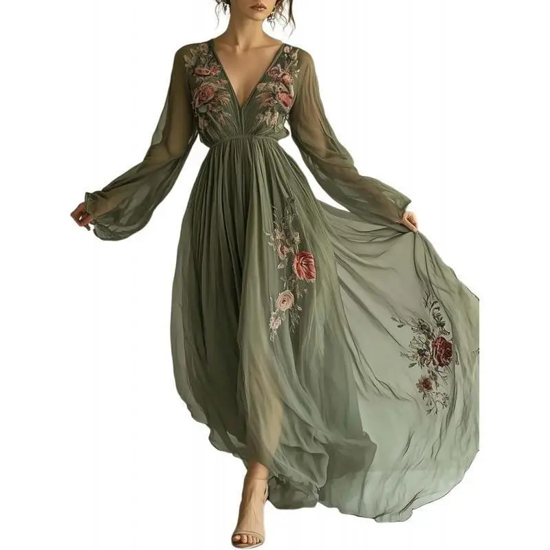 About this item ?Cloud-Soft Chiffon: Light as Air, Gentle as a Whisper Imagine fabric that floats like a summer breeze!This airy chiffon is soft against your skin, with a subtle stretch that moves with you-no stiffness, just weightless elegance that feels effortless to wear. ??Dreamy Details: Embroidery, V-Neck & Flow ??Style It 3 Ways: From Beach to Ballroom This dress adapts to any plan: ??Occasions: Wherever You Want to Shine ??Care Tips: Keep the Magic Alive ??Why You��ll Love It: This dress isn��t just clothing-it��s a mood .Slip it on, and feel like a boho princess who��s ready to dance, dine, or lounge in style.Plus, it photographs like a dream-get ready for "OMG, where did you get that?!Text. Ready to steal the spotlight? Add this dress to cart-your new favorite occasion piece is waiting! ??