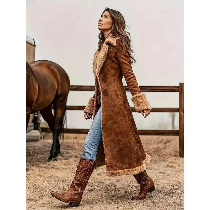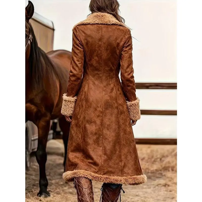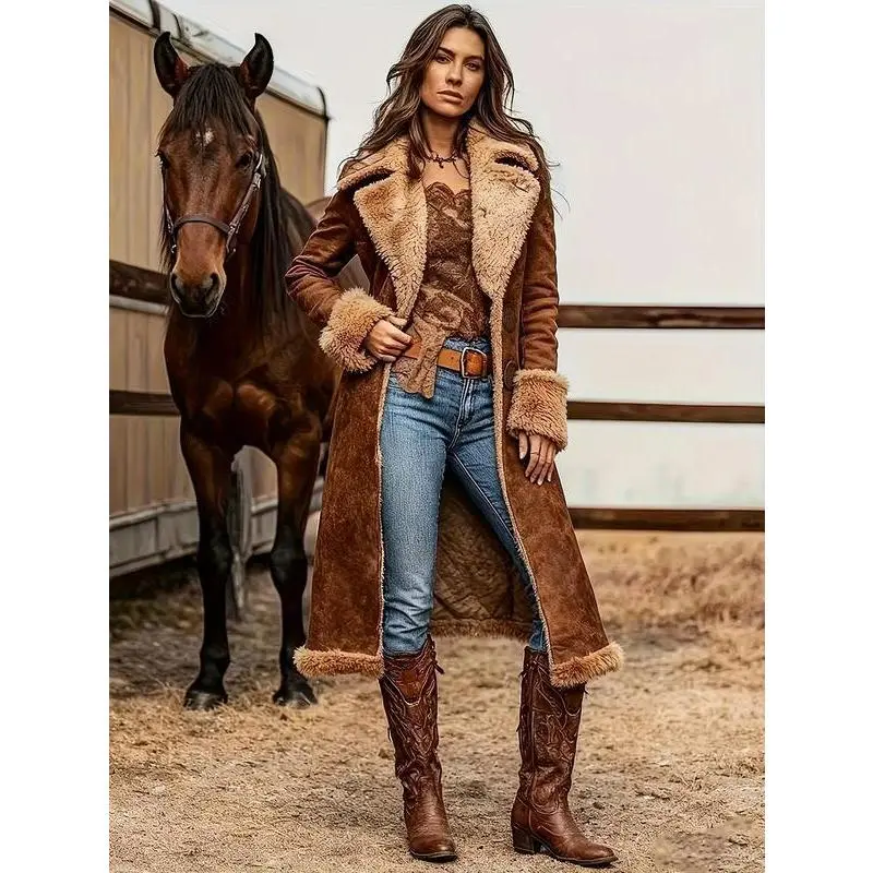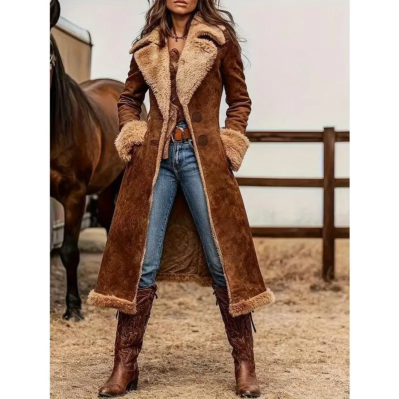 Women's Western Retro Trench Coat Fuzzy Autumn Winter Fashion Warm JacketGift