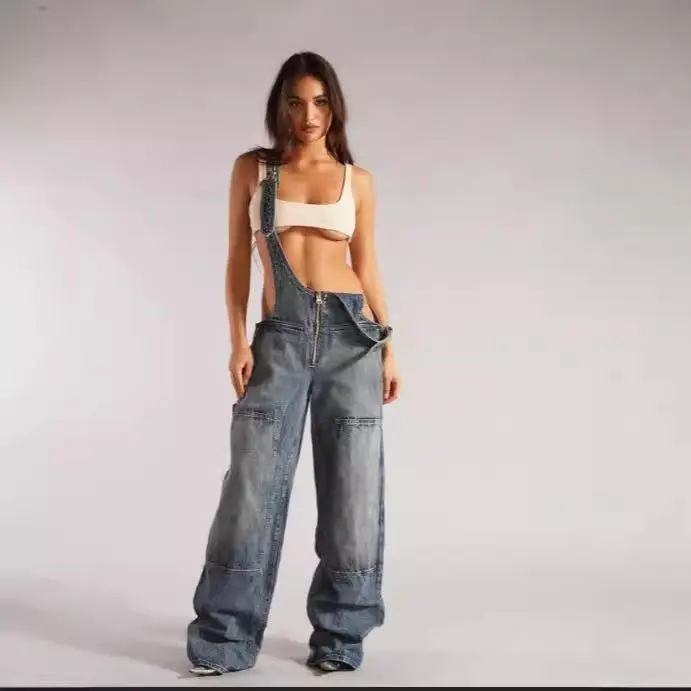 Overview: Unique?design,?stylish?and?beautiful. Good?material,?comfortable?wear. A?variety?of?colors,?any?choice. Product information: Elasticity: Micro elasticity Pants length: trousers Waist type: high waist Style type: street fashion Popular elements: pocket zipper drape Style: wide leg pants suspender pants Thickness: medium Fabric name: denim Main fabric composition: Cotton Pants type: Wide Leg Style: European and American style Craft: collage/stitching Size: ? Note: ? 1. Asian sizes are 1 to 2 sizes smaller than European and American people. Choose the larger size if your size between two sizes. Please allow 2-3cm differences due to manual measurement.? 2. Please check the size chart carefully before you buy the item, if you don't know how to choose size, please contact our customer service.? 3.As you know, the different computers display colors differently, the color of the actual item may vary slightly from the following images. Packing list: Jumpsuit x1 Product Image: ??????????